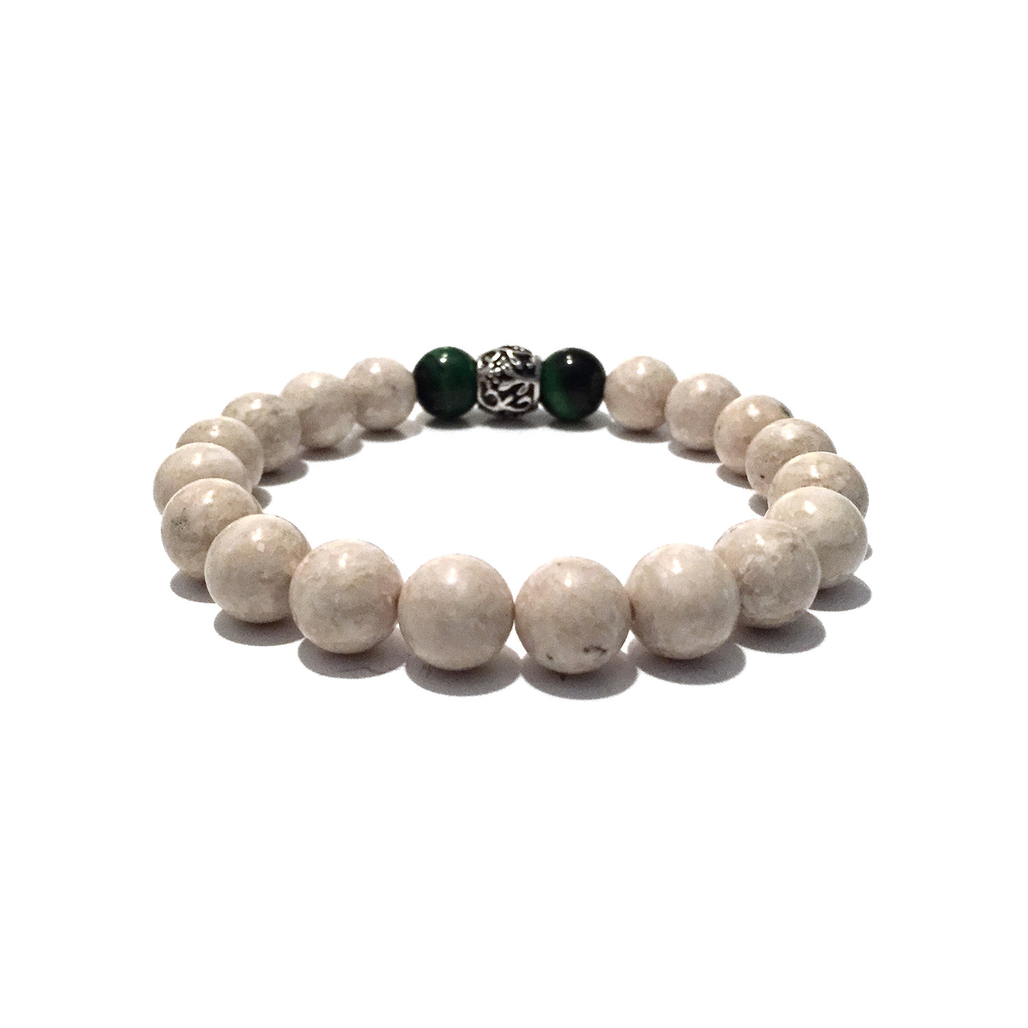 This gorgeous beaded bracelet from Teddy Winston, is crafted with the finest stones and semi-precious metals, for an aesthetically pleasing and spiritually inspiring piece. Wear it every day to elicit strength, courage, and love.
