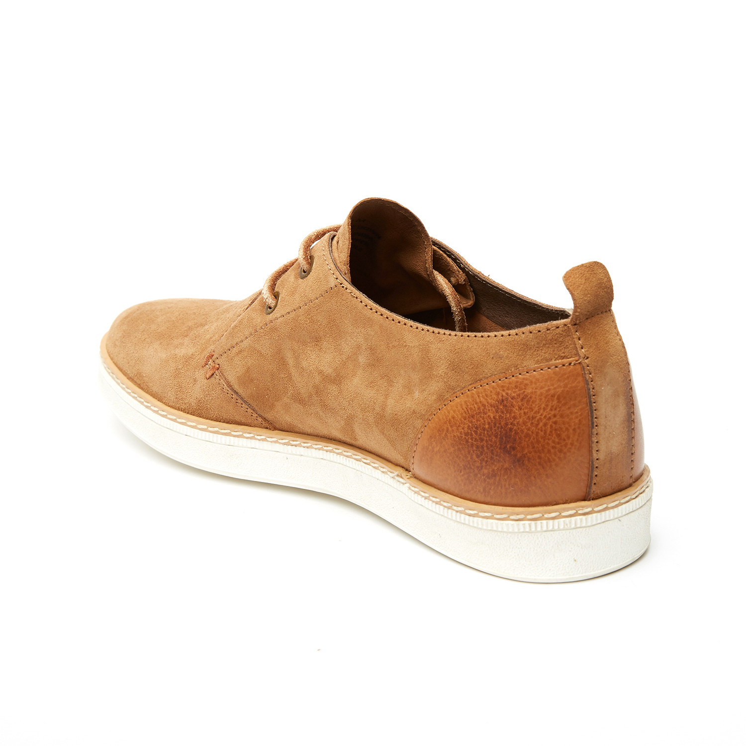 A sneaker and boat shoe hybrid that can go preppy or casual, the Fire Down Sneaker by Testosterone Shoes is a great pick. This shoe features a suede upper with leather accents around the ankle. Saddle stitching gives this kick a little something extra.