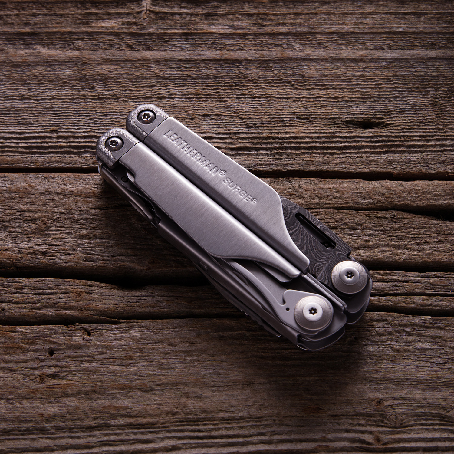This Surge Multi-Tool has been upgraded with a premium 416 layer Damascus steel blade, produced entirely in the USA by Texas Tool Crafters Inc. They only use real, hammer forged and folded steel. The repeated folding and flattening process results in a blade that is completely unique. No two blades are exactly the same.
