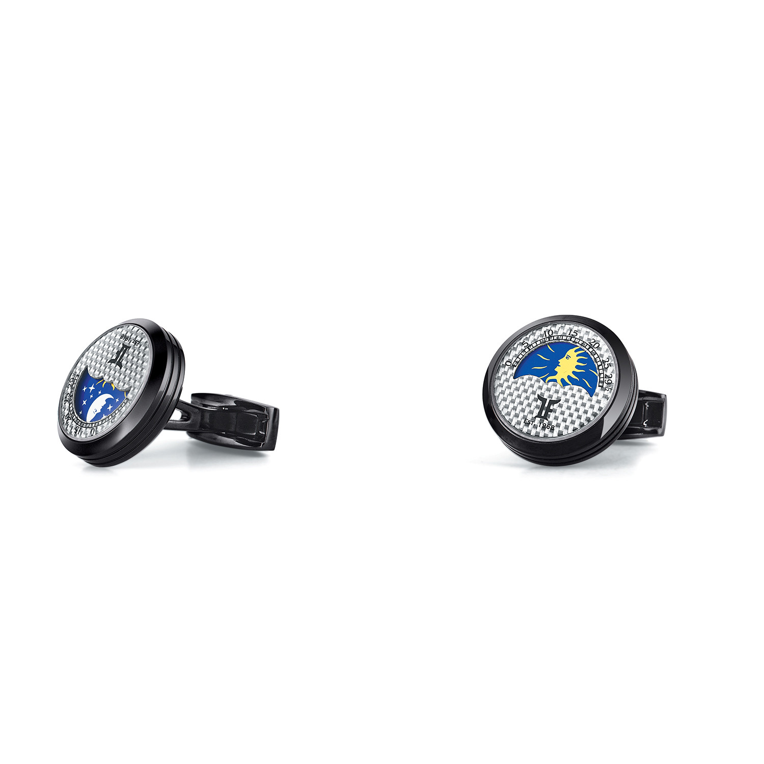 These TF Est. 1968 Genève Suisse “MoonPhase Carbon” cufflink sets are very unique, top manufactured eye catchers that will be appreciated by every watch and cufflink set lover. The day/night (sun&moon) disc is rotating (fixed on a ballbearing system) with a genuine carbon dial. These cufflink sets are water resistant, and have a mineral sapphire coated crystal, to resist daily use.