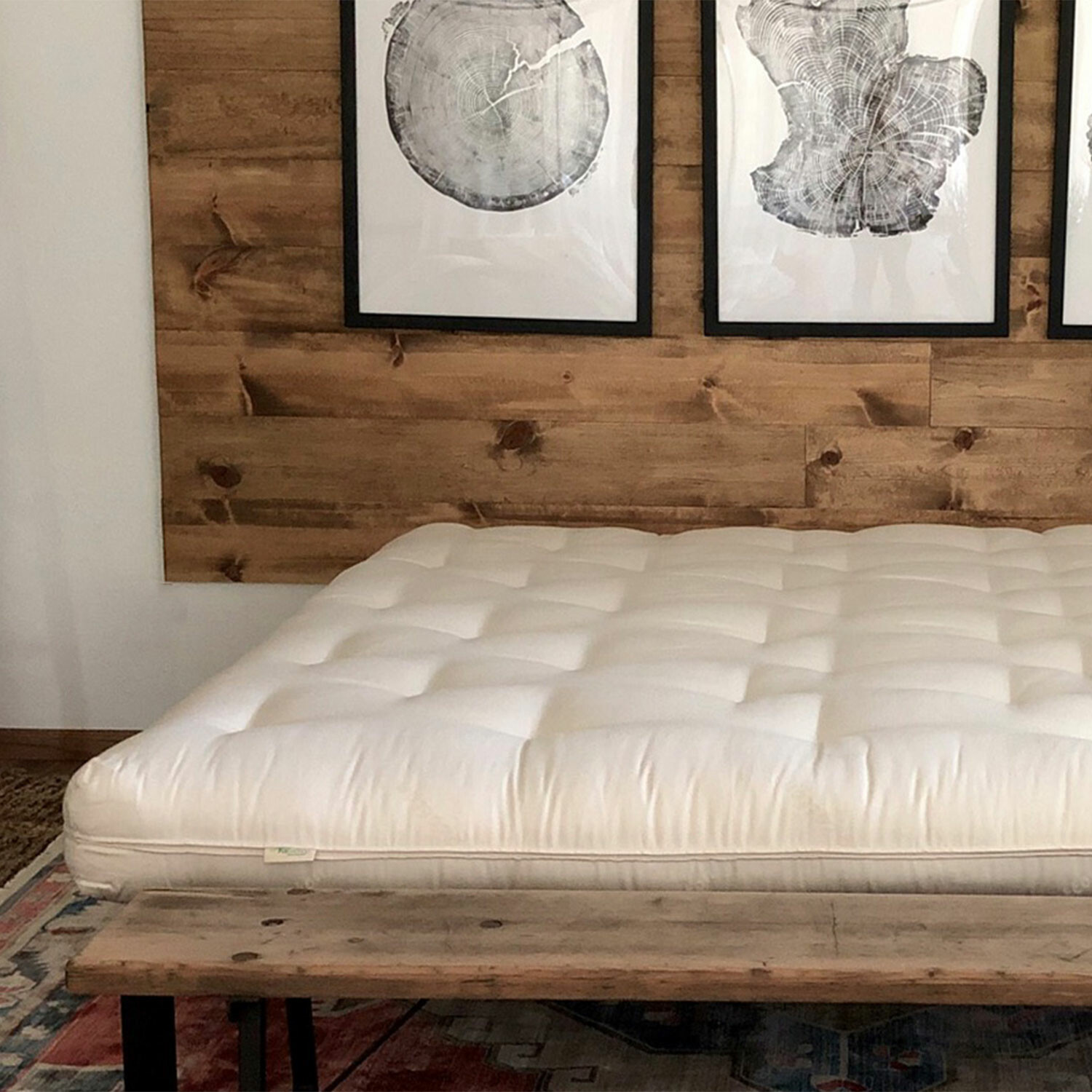 The Organic Calm Nest Mattress is one of the purest, and naturally non-toxic mattresses on the market today. This premium mattress features an organic wool base with a core of 733 4" micro coils with a pillow top of 2" organic Dunlop Latex. This provides both support and comfort. It is medium firm, hand tufted, and filled with 100% certified organic materials.