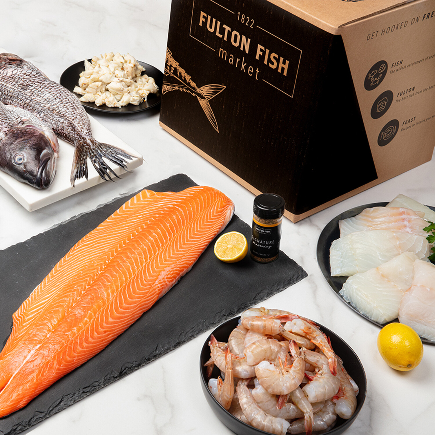 Trade in the turkey for this selection of succulent seafood from Fulton Fish Market. Located in the heart of New York City, Fulton Fish Market has been leading the fish market in America for more than 180 years. They provide restaurants and home cooks alike with the freshest, most flavorful fish possible. From juicy lobster tails to decadent salmon fillets, this Thanksgiving seafood selection will become your new holiday tradition.