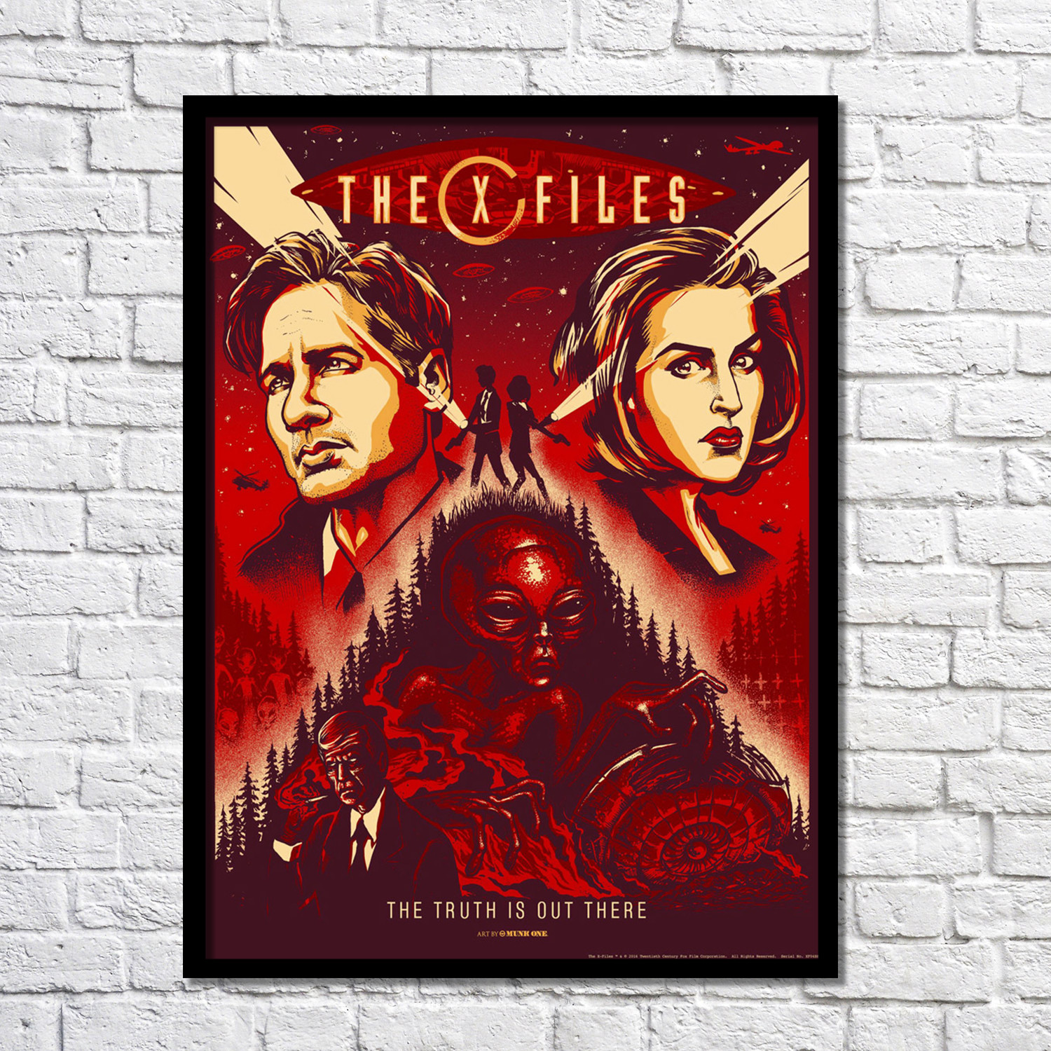 Beautifully combining your love of all things supernatural, extraterrestrial, and paranormal with striking graphic art styles; this limited edition X-Files art print pays homage to Special Agents Mulder and Scully in bold, eye catching style. It’s vibrant color palette and high contrast design will encourage your guests to wonder, “you ever seen a UFO in these parts?”