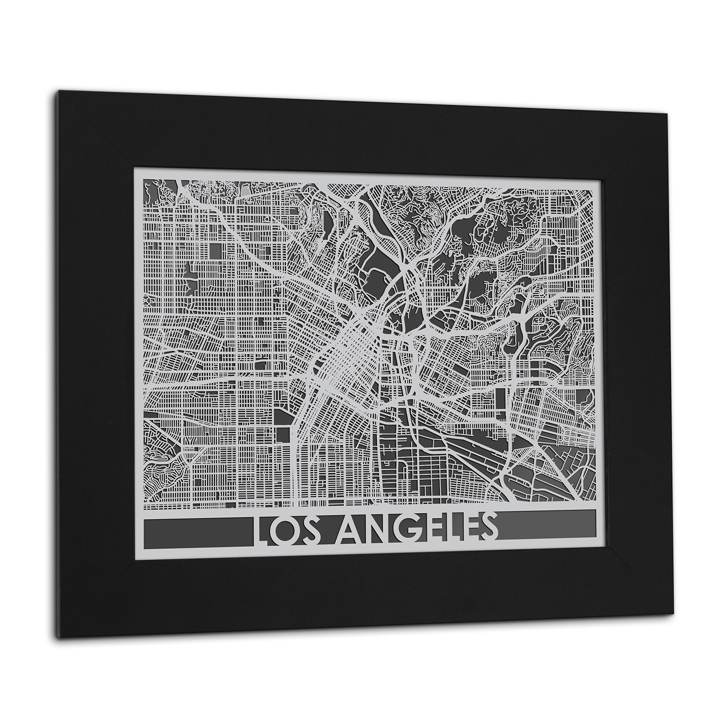 Show your love of Los Angeles with this machined map. This street map is made of stainless steel and cut with CNS precision machinery for a stunning silhouette with a bold typeface.