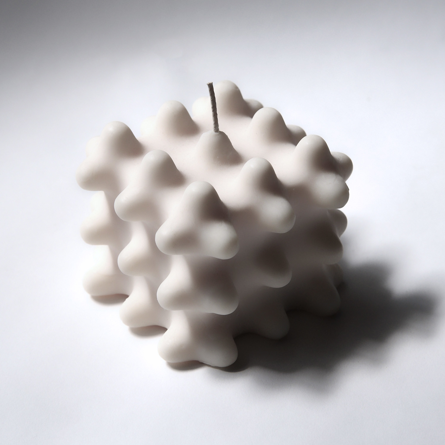 This array of soy wax candles are livable art pieces, molded in structural, architectural silhouettes that are designed to stay beautiful as they melt, and use space, shadow and dimension to make them look as though they are lit from within. The flame burns a cylinder inside the core, to leave the sides of the candle intact, transparent, and illuminated.