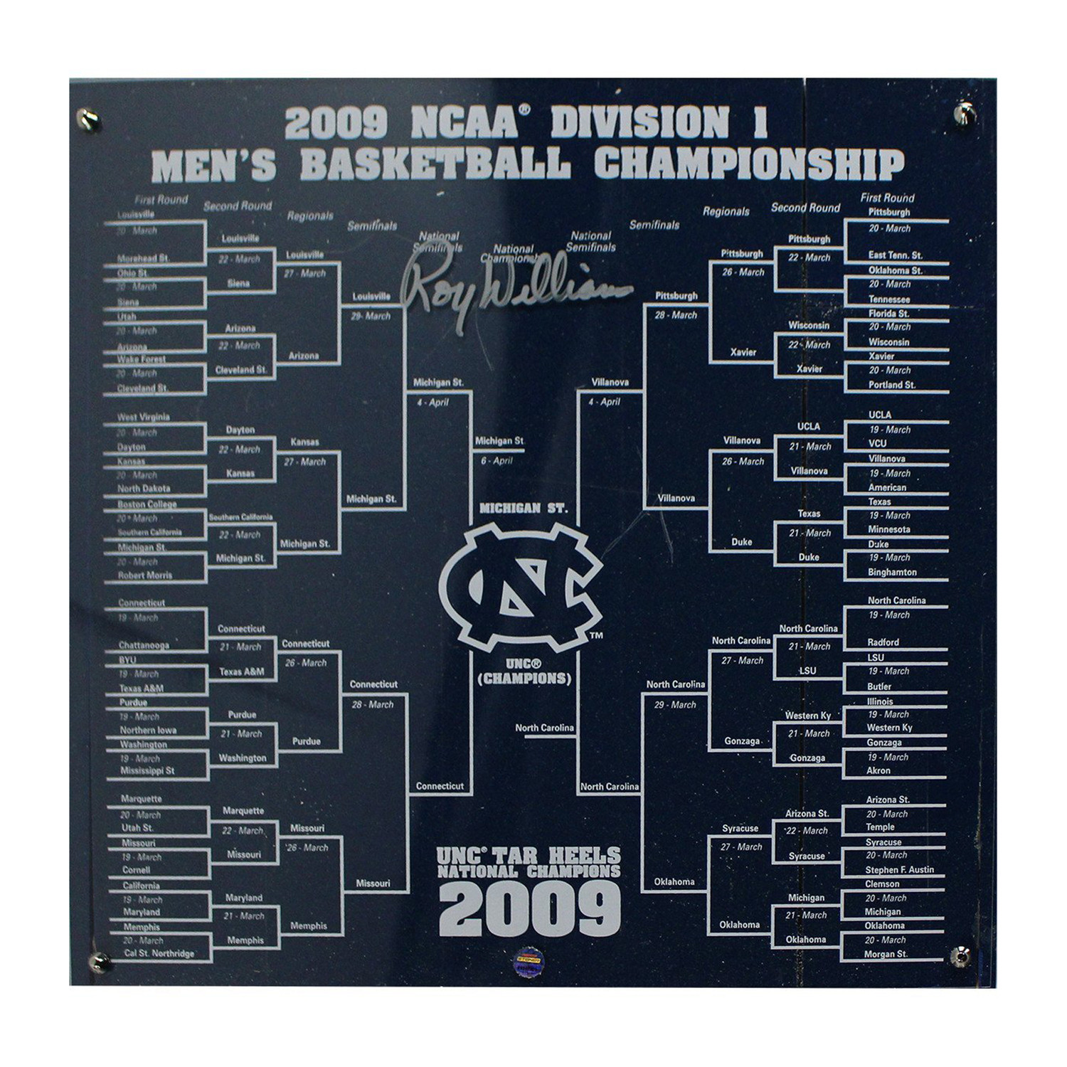 Roy Williams Signed UNC Basketball Engraved Bracket