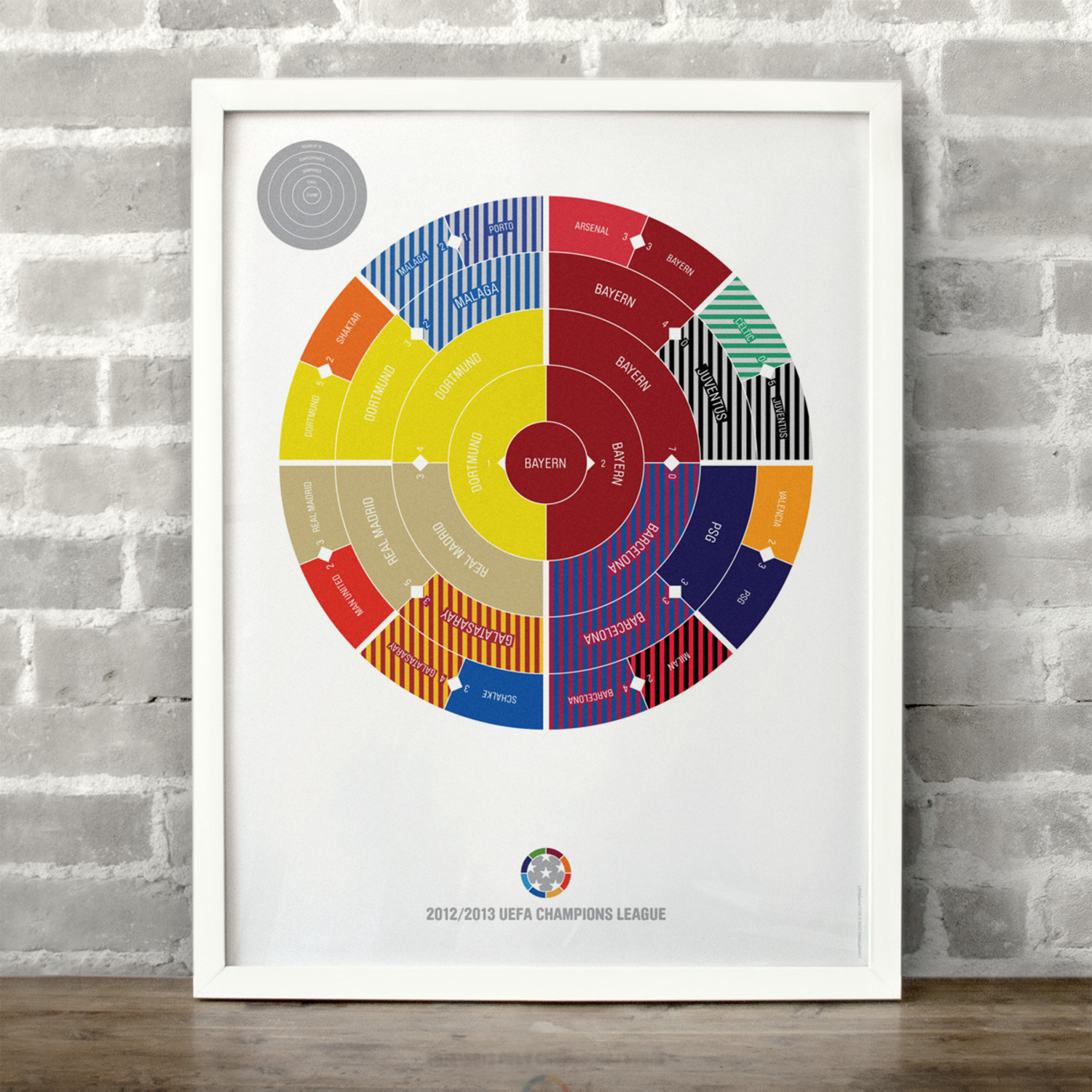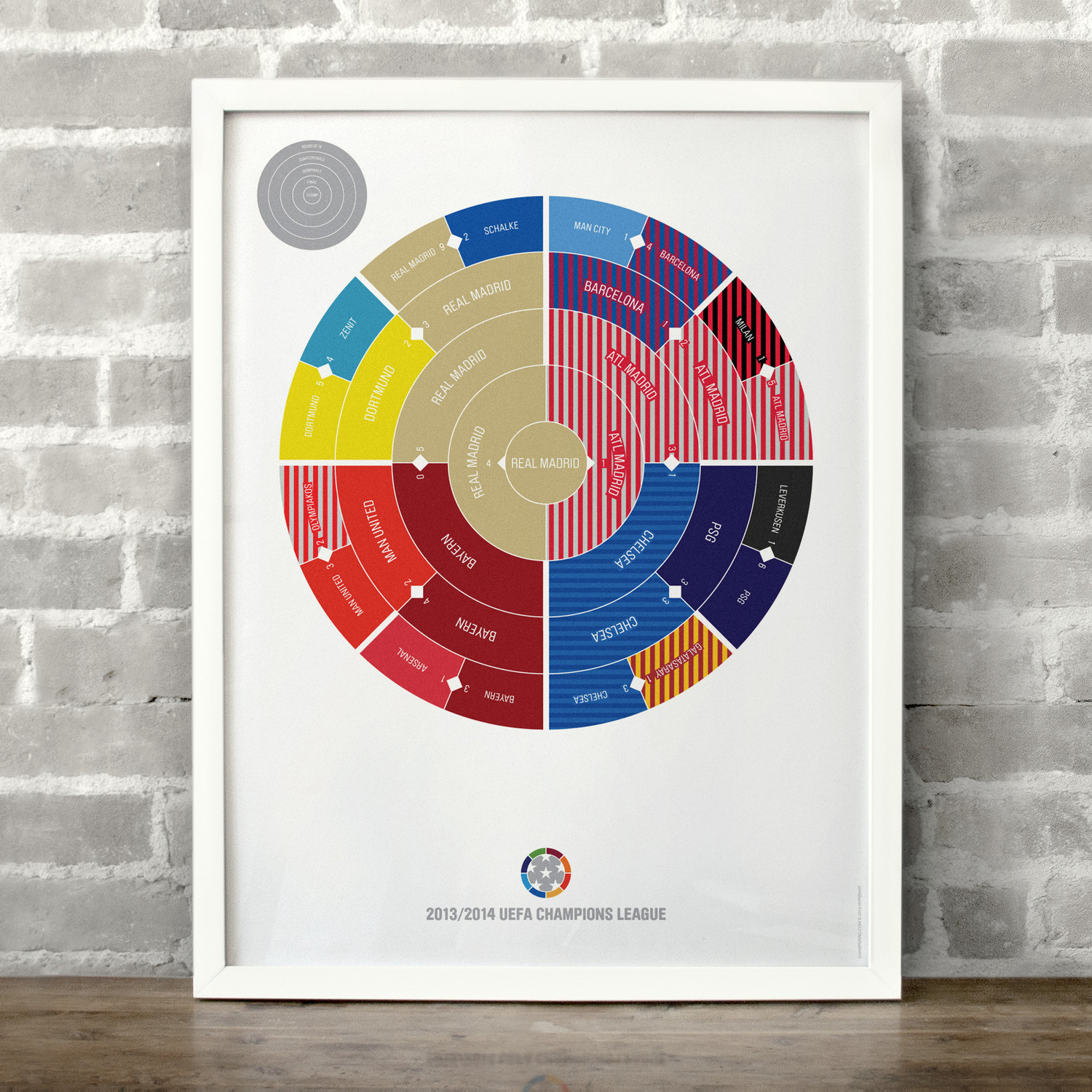 This print captures each year of UEFA Champion's League Football on a beautiful art print. It's the perfect gift for super fans who have a favorite year. Each radial bracket is hand-crafted with love in Brooklyn by Hyperakt and beautifully printed on 100% cotton rag 200gsm fine art paper. They look super smart on any sports fan's wall. Collect each one and celebrate your love of sports in a design-forward fashion.