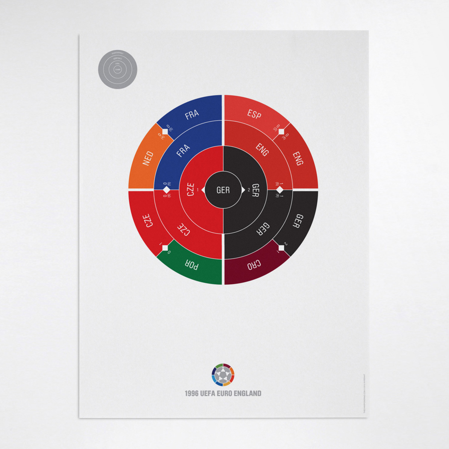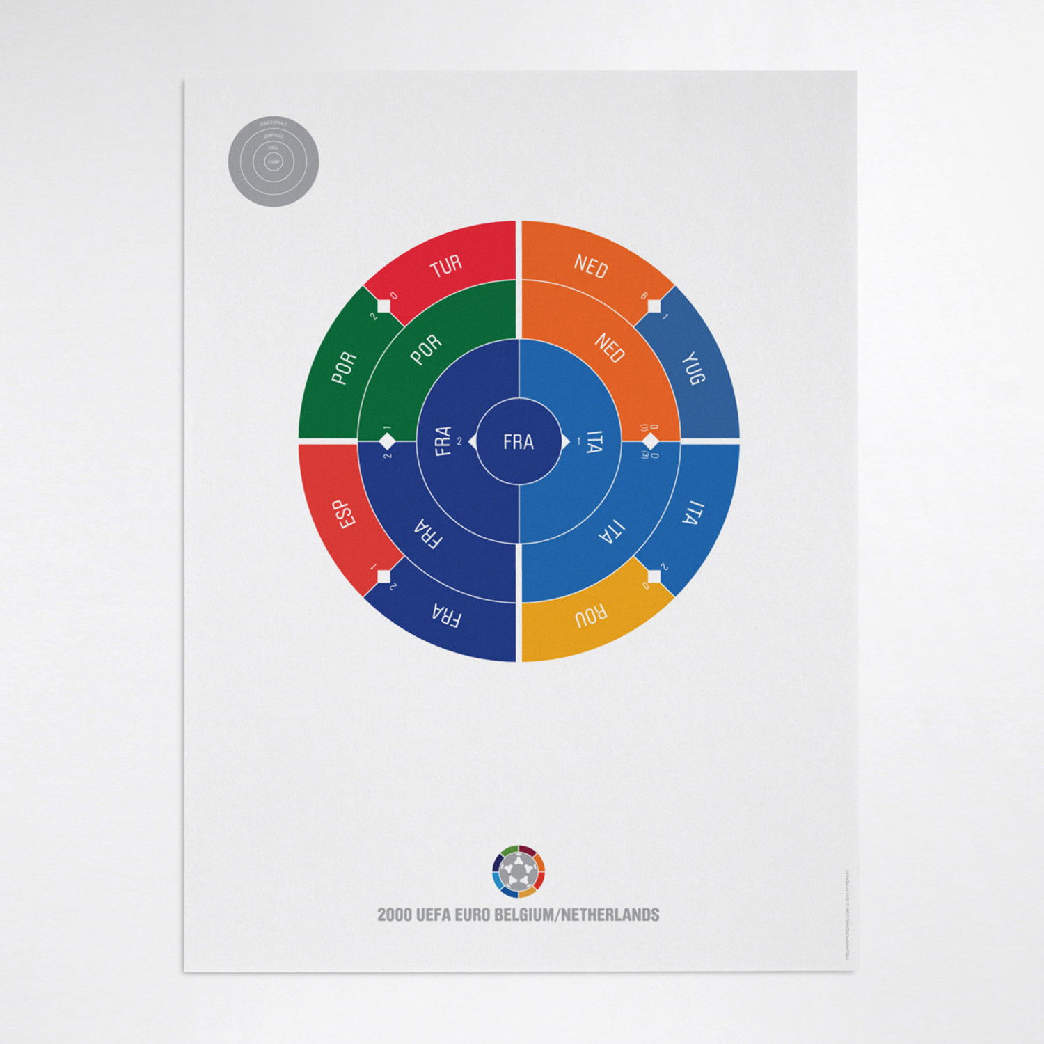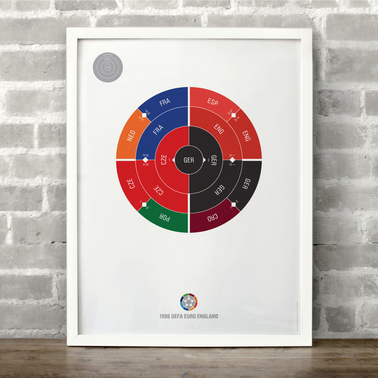 This print captures each year of UEFA Euro Football on a beautiful art print. It's the perfect gift for super fans who have a favorite year. Each radial bracket is hand-crafted with love in Brooklyn by Hyperakt and beautifully printed on 100% cotton rag 200gsm fine art paper. They look super smart on any sports fan's wall. Collect each one and celebrate your love of sports in a design-forward fashion.