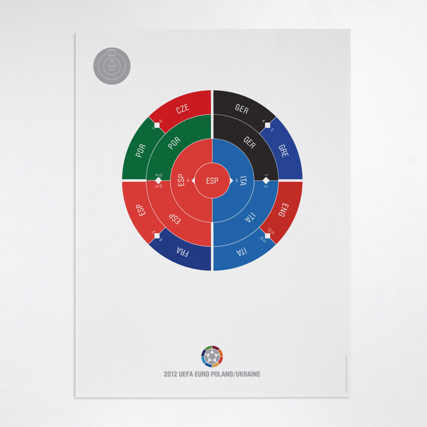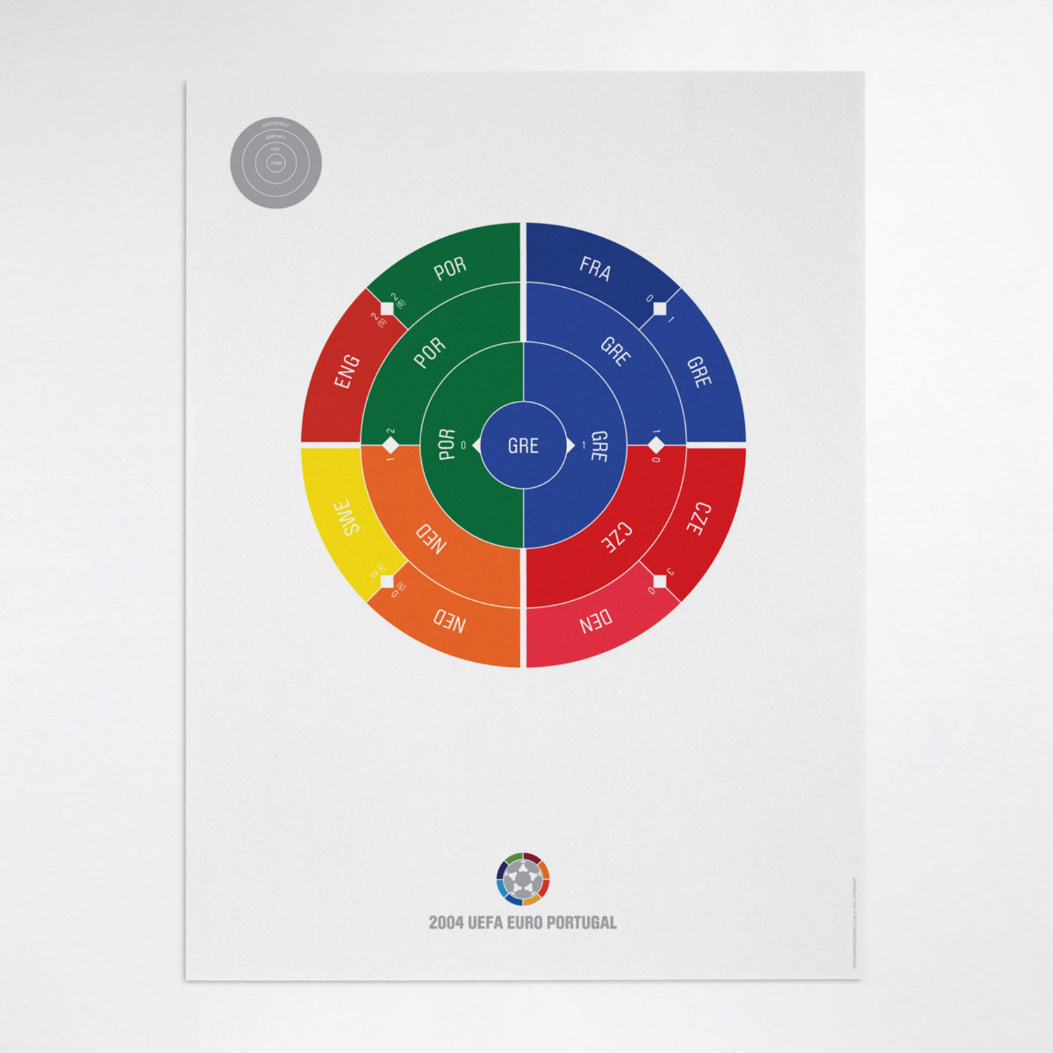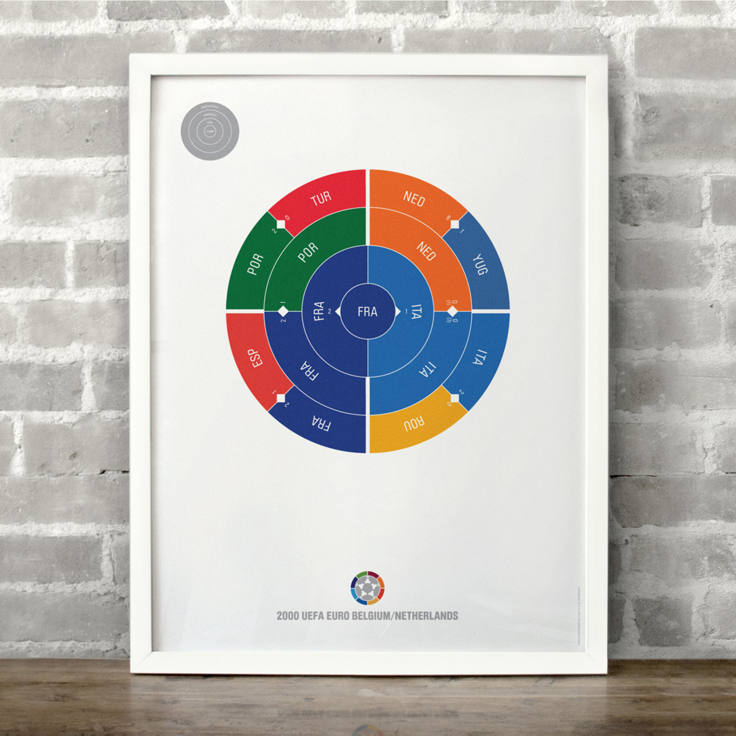 This print captures each year of UEFA Euro Football on a beautiful art print. It's the perfect gift for super fans who have a favorite year. Each radial bracket is hand-crafted with love in Brooklyn by Hyperakt and beautifully printed on 100% cotton rag 200gsm fine art paper. They look super smart on any sports fan's wall. Collect each one and celebrate your love of sports in a design-forward fashion.