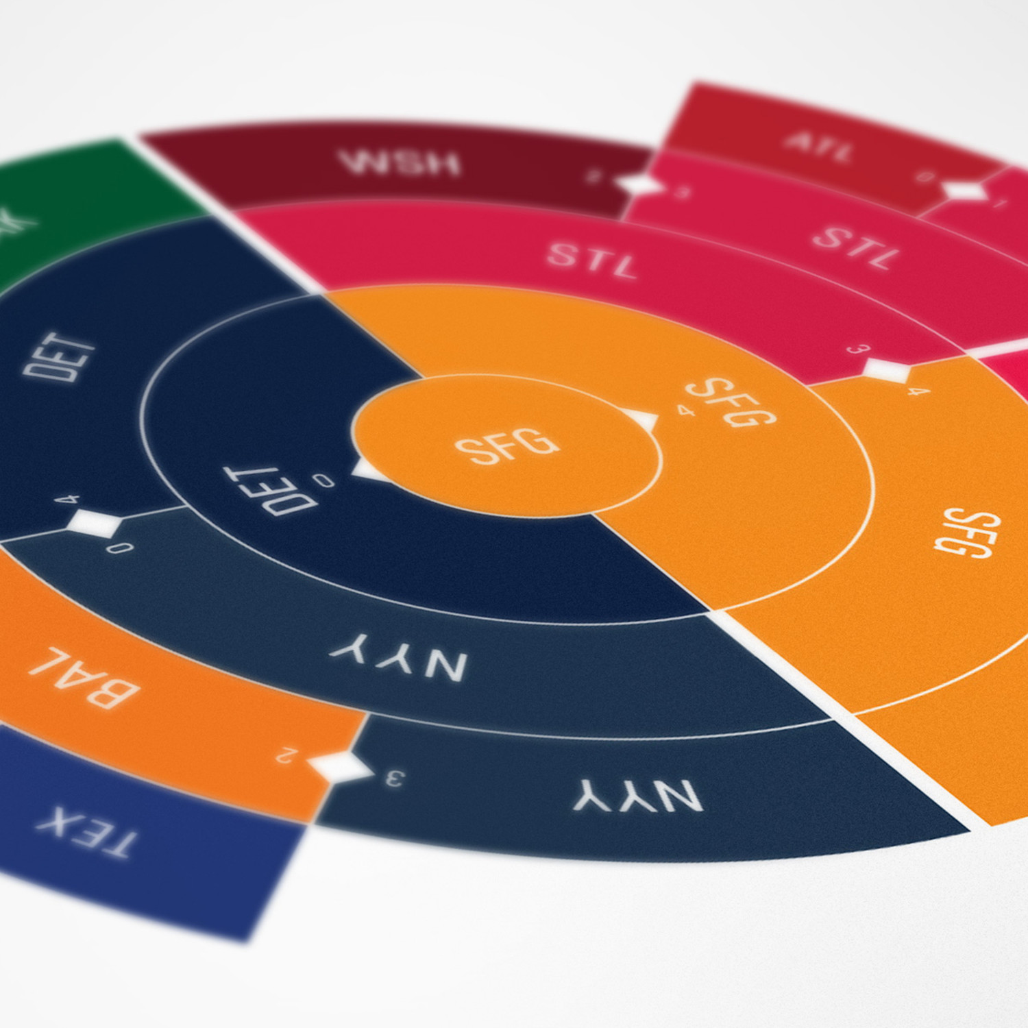This print captures each entire MLB playoffs on a beautiful art print. It's the perfect gift for super fans who have a favorite year. Each radial bracket is hand-crafted with love in Brooklyn by Hyperakt and beautifully printed on 100% cotton rag 200gsm fine art paper. They look super smart on any sports fan's wall. Collect each one and celebrate your love of the MLB in a design-forward fashion.
