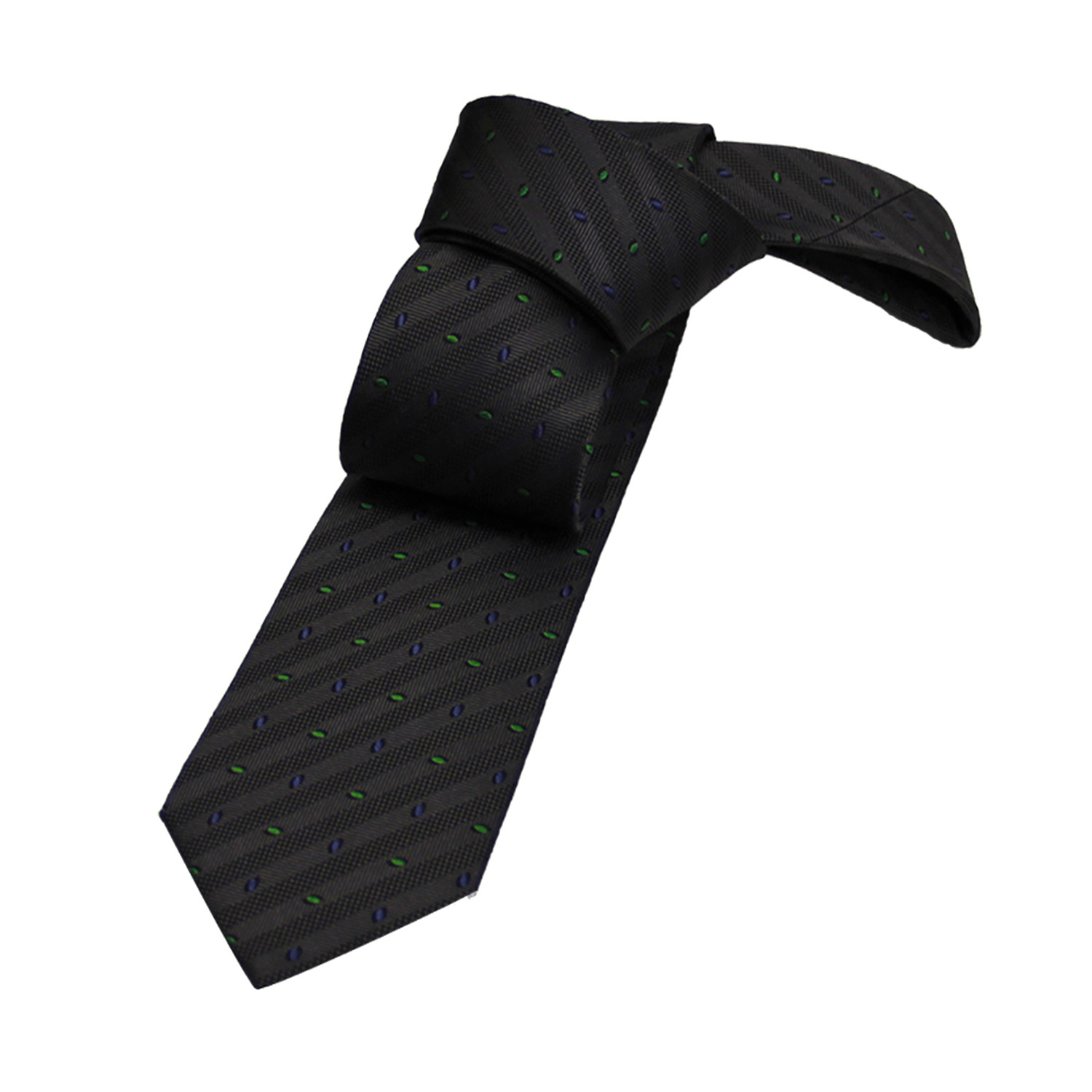 This colorway of the Trumbull Abstract tie is a modern, abstract design with a green and blue oval pattern set against an intricate houndstooth and herringbone charcoal gray background. Its' recommended to wear with a solid or windowpane white, pink, or blue shirt, and a solid or windowpane charcoal gray or navy blue suit. A windowpane pattern on either a shirting or suiting fabric will contrast well with the intricate, closely held tie pattern.