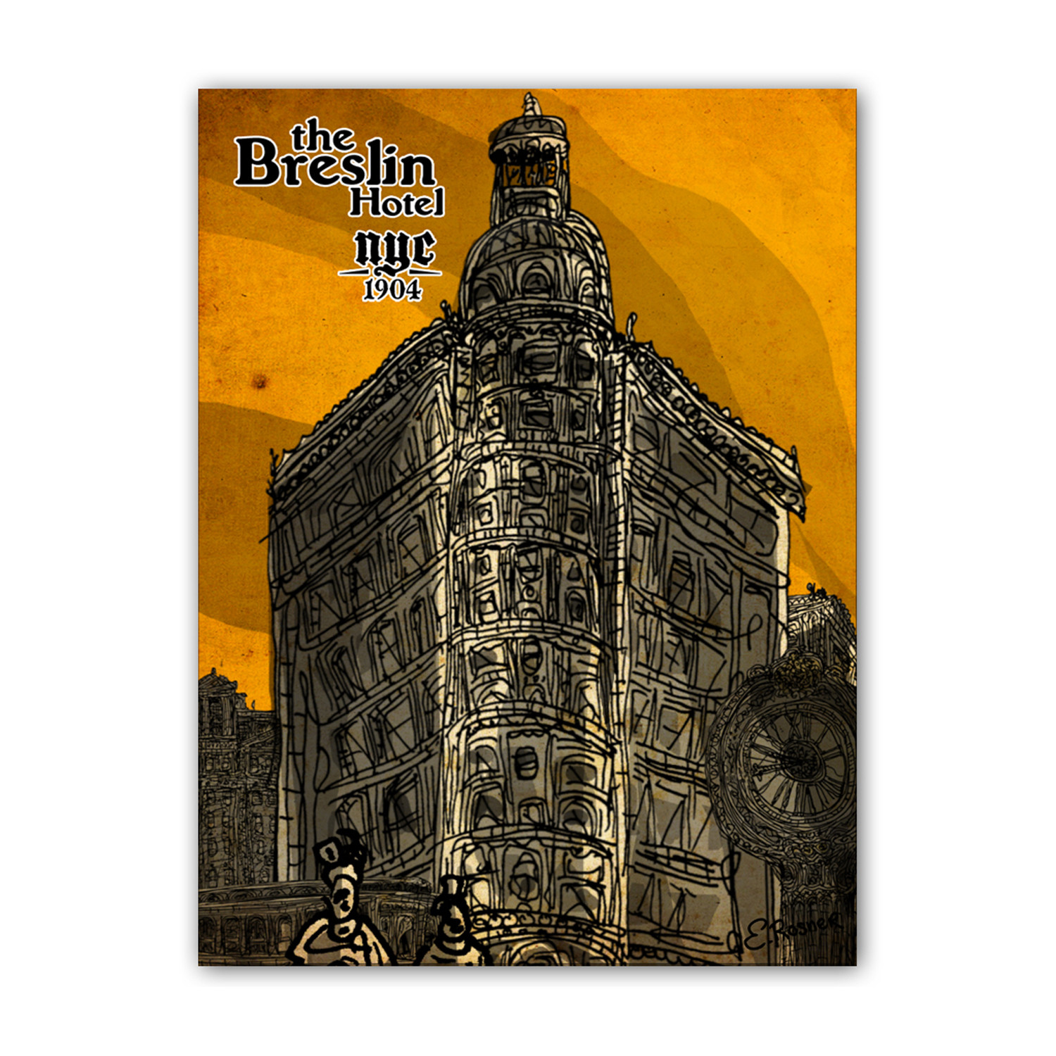 Experience New York's vintage glamour with this print of the Breslin Hotel. Rosner focuses his attention on the historic landmark and shares its monumental silhouette with the viewer.