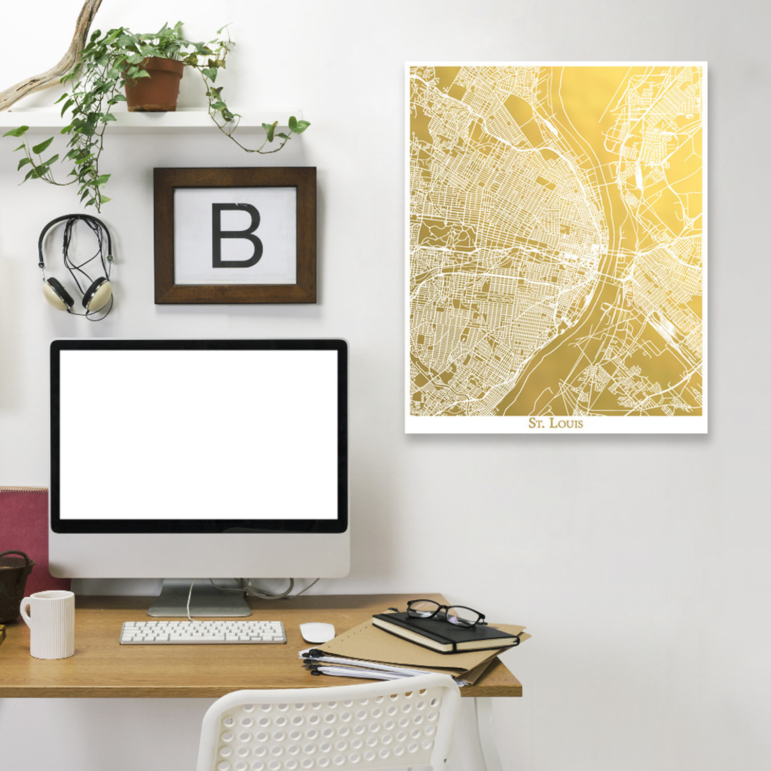 Your city sets the gold standard when it comes to places to live. From the incredible art and unique architecture, to the amazing food and indescribable energy of the city streets, your city deserves to be celebrated, so why not do it with gold? This incredibly vibrant, gallery wrapped canvas print shows off the intricate layout of a city, in stunning, realistic detail.