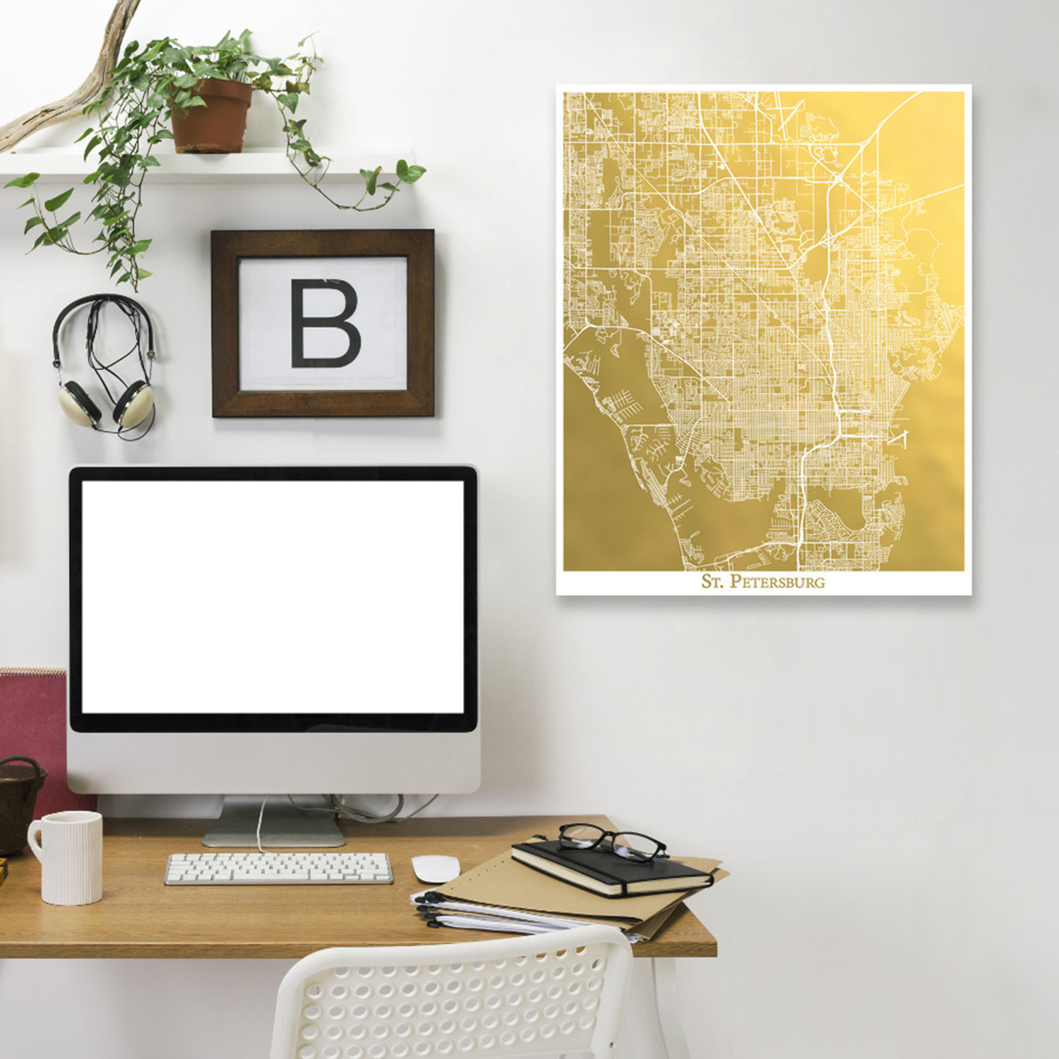 Your city sets the gold standard when it comes to places to live. From the incredible art and unique architecture, to the amazing food and indescribable energy of the city streets, your city deserves to be celebrated, so why not do it with gold? This incredibly vibrant, gallery wrapped canvas print shows off the intricate layout of a city, in stunning, realistic detail.