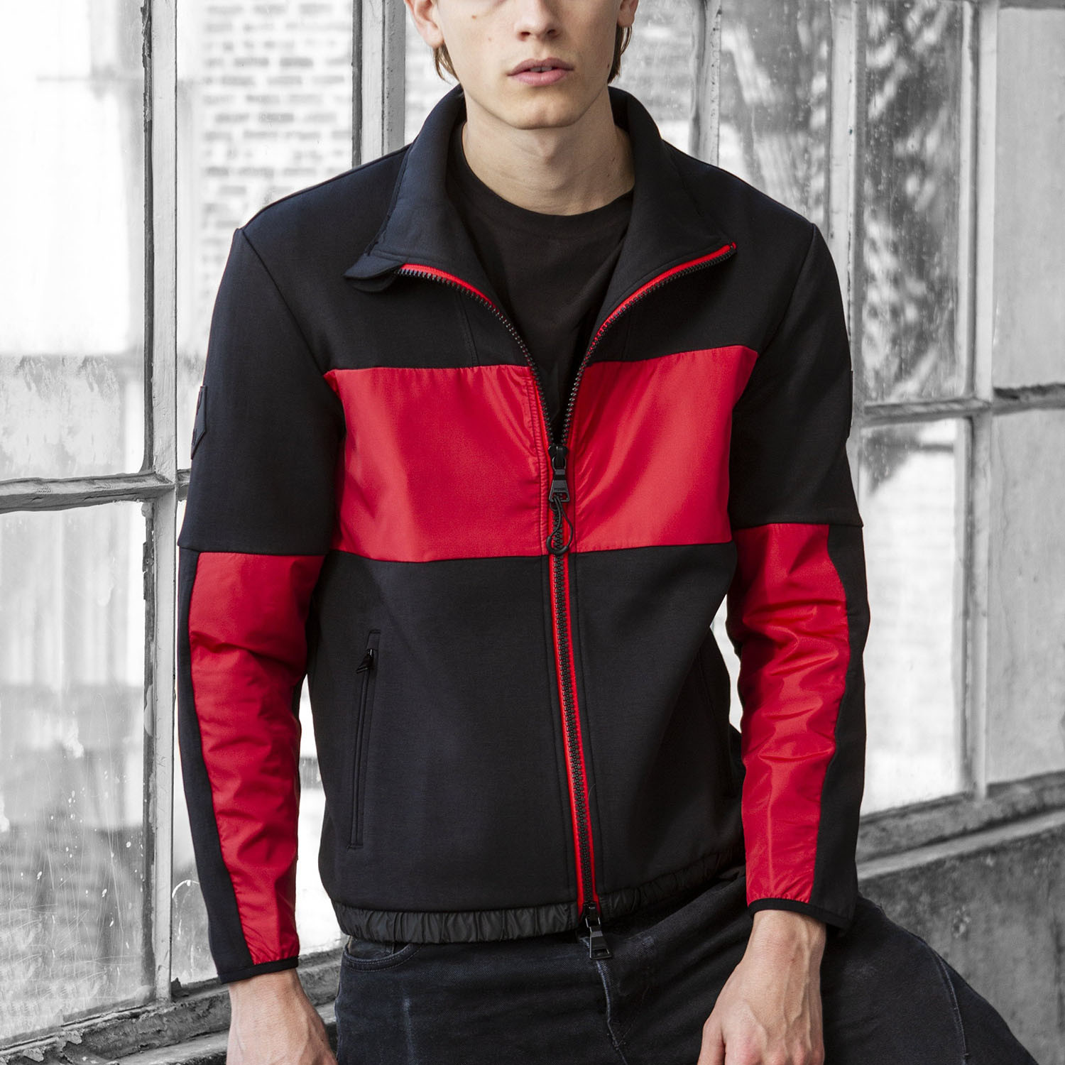 Introducing the Mixed Media Funnel Jacket: an essential sharp, sports-tech outerwear addition to the iconic Messi collection. Made from sandwich and woven polyester knit, this jacket is sure to turn heads with its edgy, high-tech appearance and features. From the 8 gauge two way zipper in the center, to the vislon hidden zipper front pockets, this jacket has true unique functionality and looks just as cool.