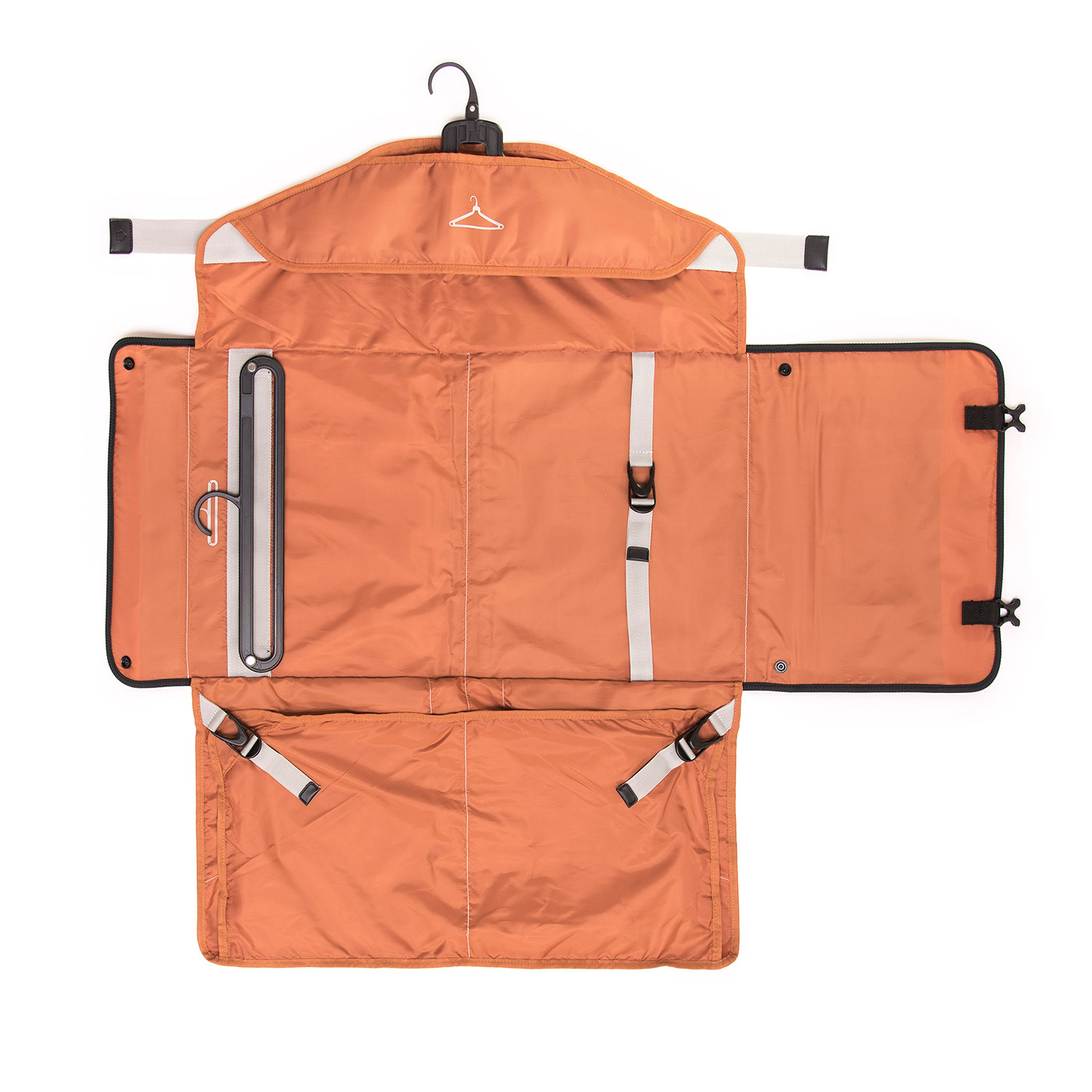 The included space saving folding garment hangers are beautifully designed to fold within your jacket and trousers without creasing them, and engineered with an anti-slip finish and integral magnets to hold your garments securely. It's also equipped with plenty of organizing pockets for your shirt, tie, pocket square, and other important accoutrement. No matter where you're going, with Pliqo, you'll always arrive in style.