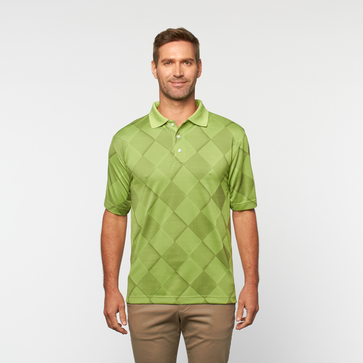 Skins Game // Bamboo Performance Diamond Jacquard Short-Sleeve Polo // Green Apple