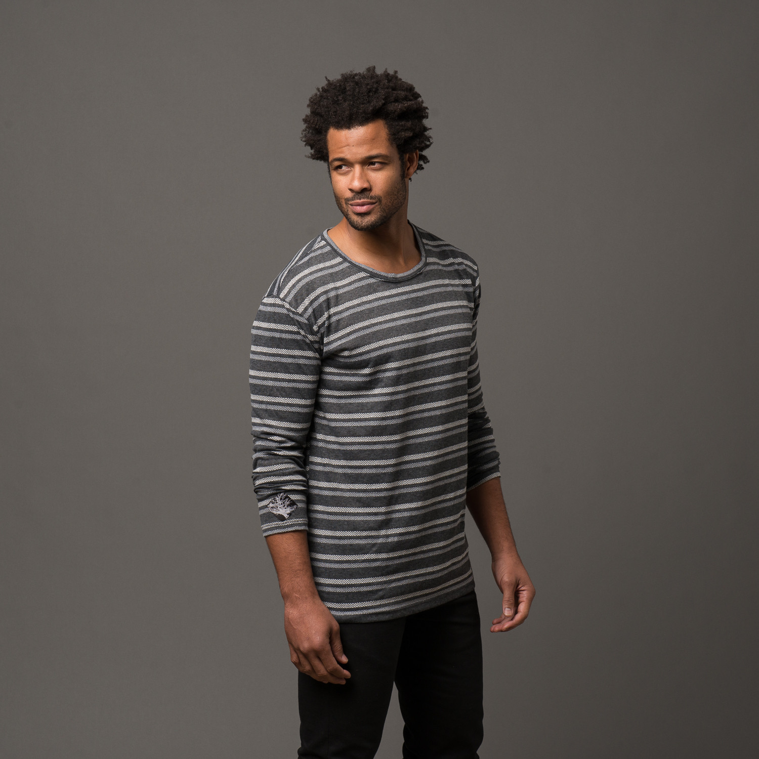 This Long-Sleeve Tail T-Shirt is the perfect balance of elevated casual and relaxed streetwear. With its striped fabric and extended hem, pair it with a pair of dark or distressed jeans and you're good to go.