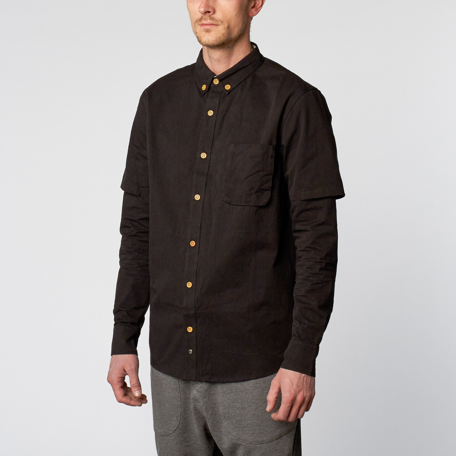 Popped pockets and sleeves over sleeves equal yes please. These button-down shirts are sure to keep you looking slick and cool.