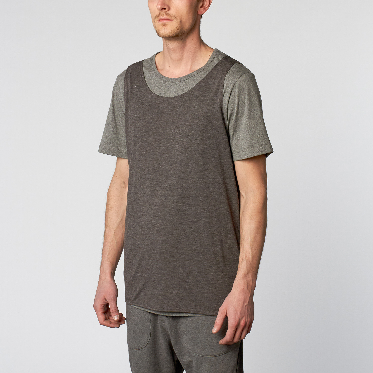 The Teamster Tee is all about the b-ball vibe. Two layers of 130g pre shrunk cotton come together to form a tee-singlet combo.