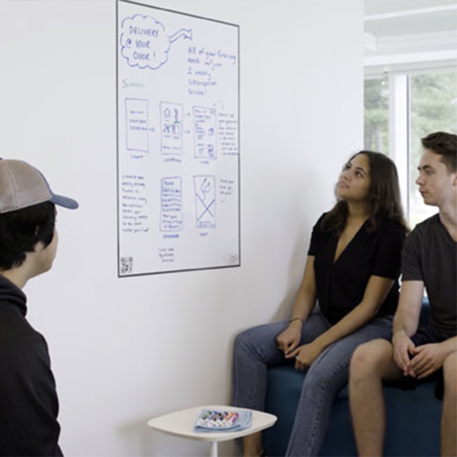 It's a peel and stick whiteboard, powered by the futuristic Rocketbook app, so you can unleash your creativity with the utility of the cloud. The Think Board X functions like a traditional whiteboard, but connects to the power of digital with the Rocketbook mobile app. That means before you erase your notes, they can be scanned to online destinations like Google Drive, Dropbox, and Evernote — perfectly organized. Now, your ideas can live forever, even after they are erased! Organize your quick notes and tasks. Share brainstorms and updates with your team. Capture your next million dollar idea.