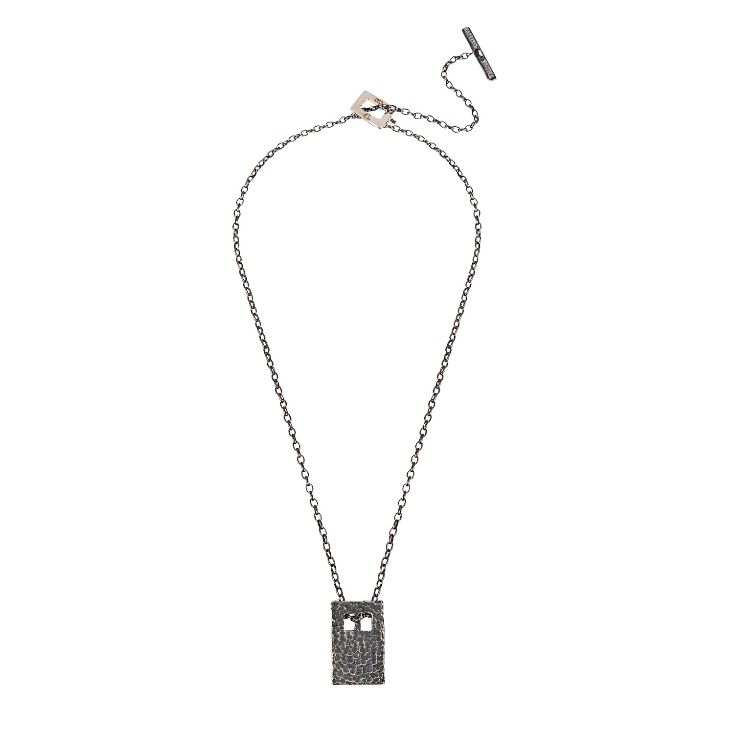 Hammered Silver Pendant + Gunmetal Chain