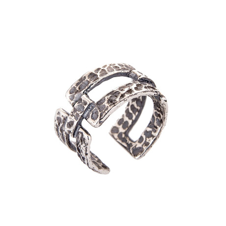 Designed by Antonio Marsocci, the Hammered Silver Ring features a bold design heightened by its beautifully textured hammered finish. Completely adjustable for a custom fit, it perfect for adding a touch of rebellion to your everyday look.