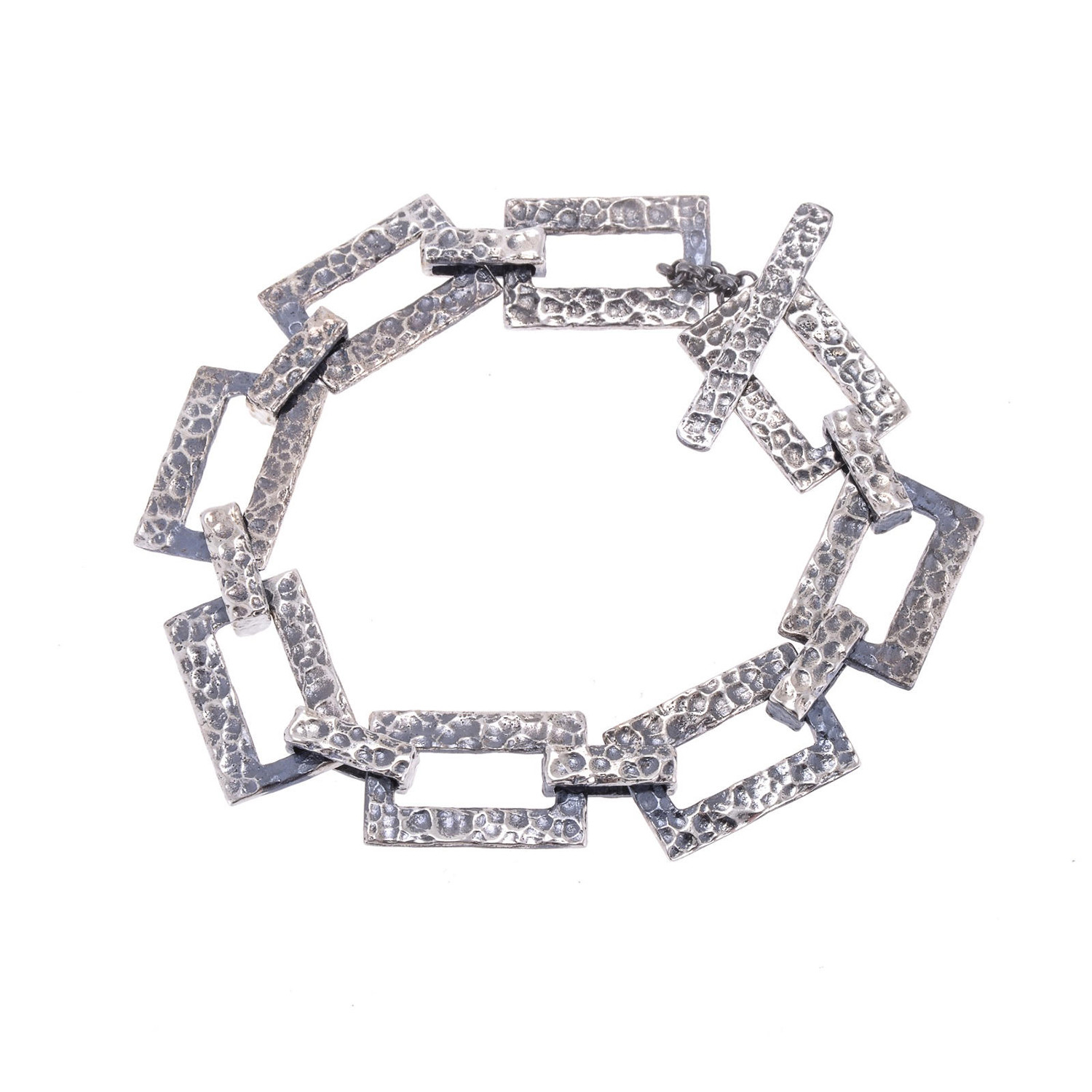 This Think Positive Silver Chain Bracelet is a unique twist on traditional rolo chain bracelets. The interlinks are composed of 925 sterling silver, and complemented by a gleaming hammered texture for a rugged finish.
