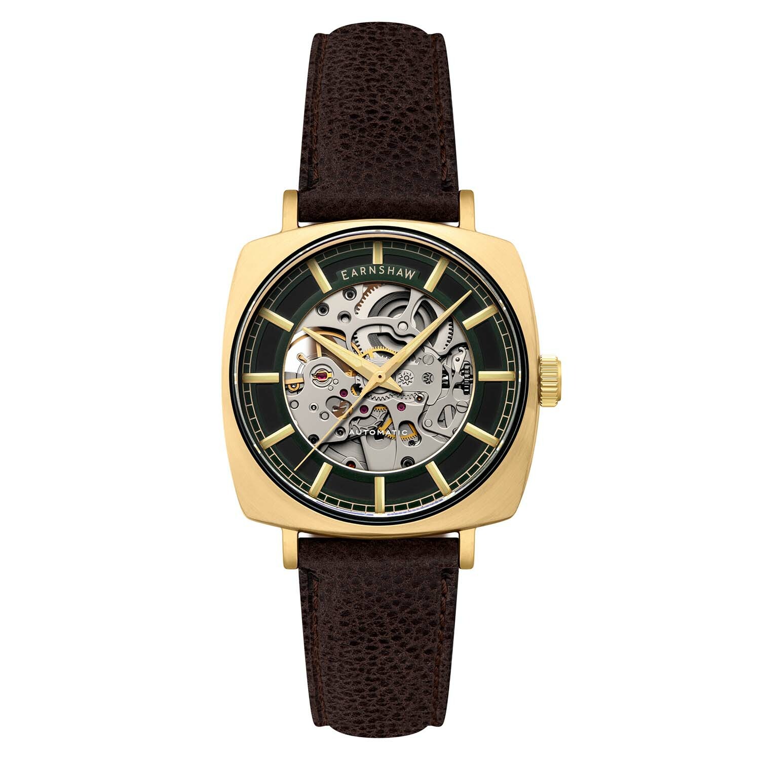 MOVEMENT: M-PTS-P2650SZ CASE MATERIAL: STAINLESS STEEL CASE DIAMETER (MM):40 CASE SHAPE: SQUARE CASE COLOR: GOLD DIAL COLOR: BLACK BAND: GENUINE LEATHER STRAP BAND COLOR: BROWN WATER RESISTANCE: 5 ATM INCLUDED: -ES-IFCARD-01 PACK WITH ES-BOX-38