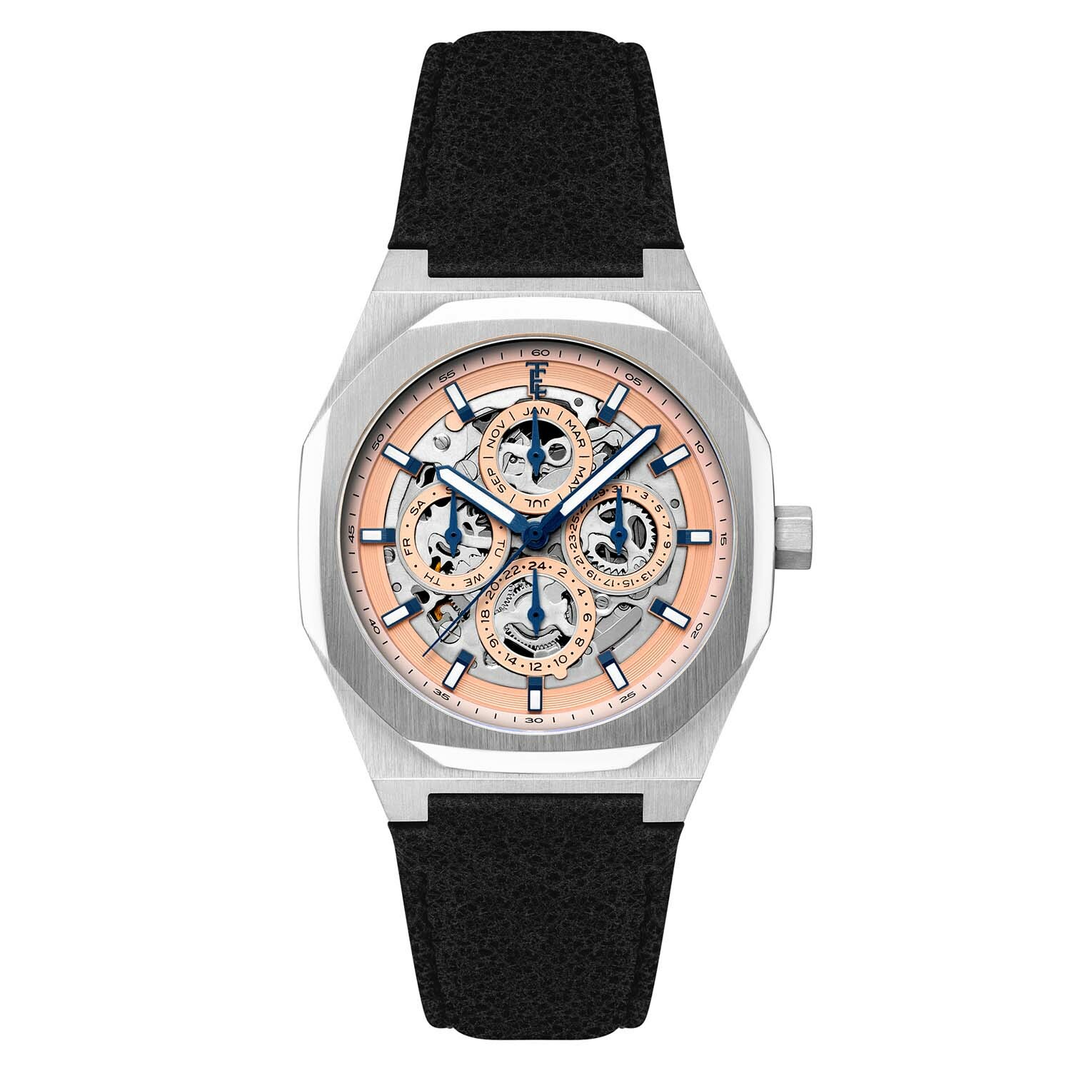 MOVEMENT: M-SG-TY2876SK-3A CASE MATERIAL: STAINLESS STEEL CASE DIAMETER (MM):42 CASE SHAPE: ROUND CASE COLOR: STAINLESS STEEL DIAL COLOR: PINK BAND: GENUINE LEATHER STRAP BAND COLOR: BLACK WATER RESISTANCE: 5 ATM INCLUDED: -ES-IFCARD-01 PACK WITH ES-BOX-45
