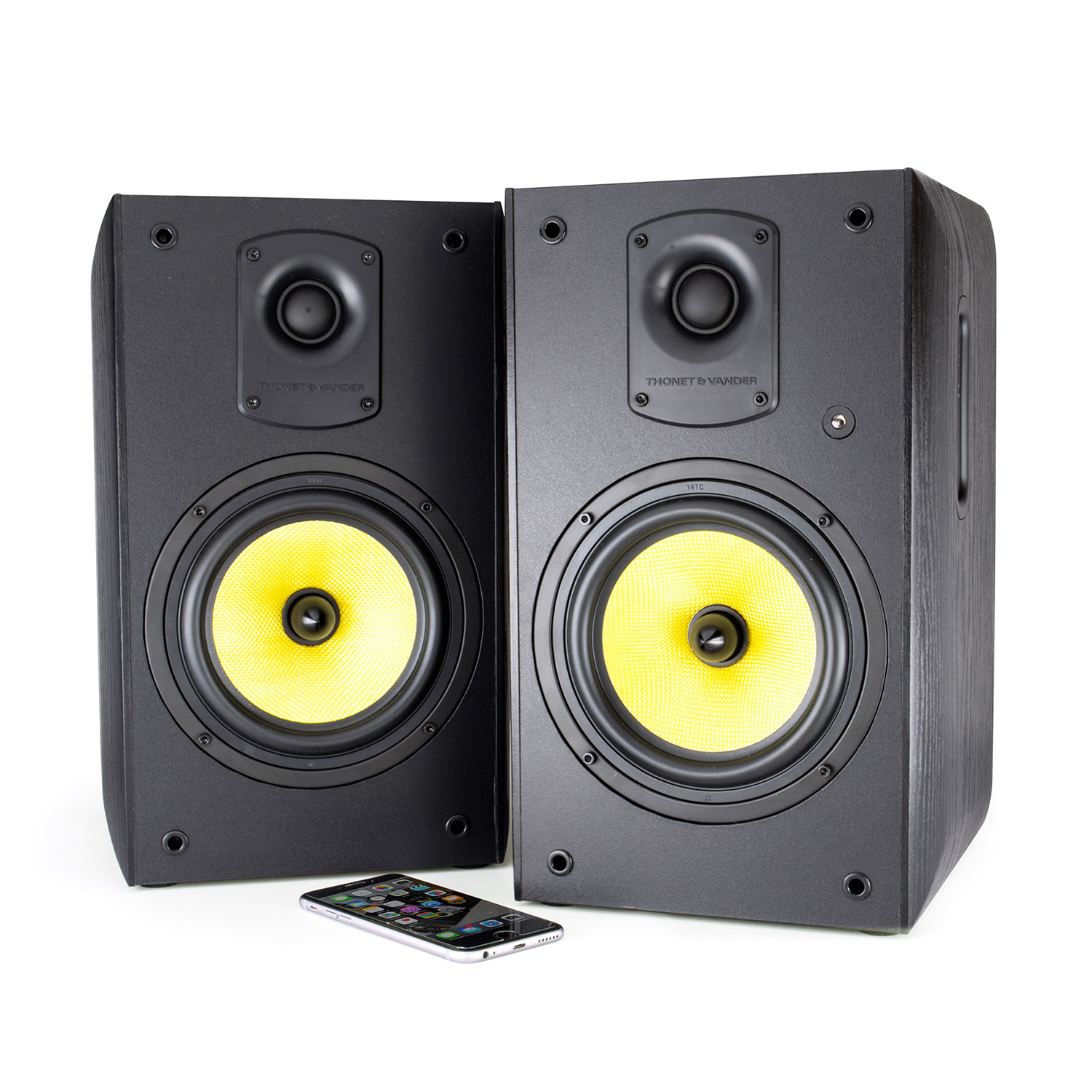 The Kugel™ bookshelf system is perfect for your studio, den or game room, and can even be used with DJ equipment. The combination of the Flug Bluetooth receiver lets you stream tunes via your smartphone or tablet, so you can enjoy music, TV, movies and games with amazing sound power and clarity.