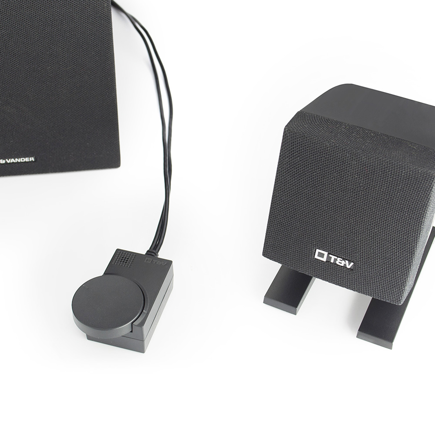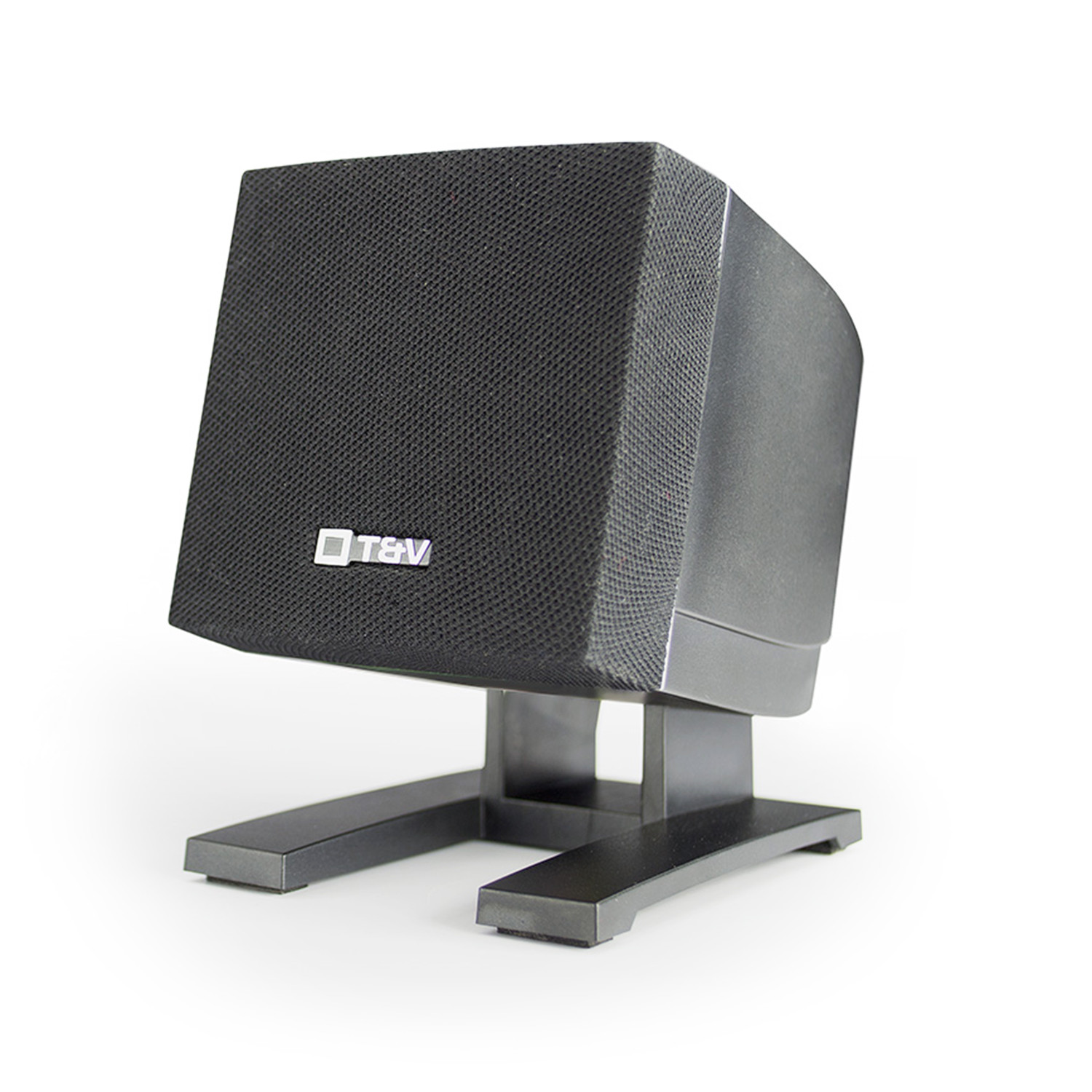 In Spiel simplicity is enhanced with the confluence of curves and straight lines. A set of geometries of different sizes and shapes come together in harmony in this exquisite design. It is a compact design, exactly 150 x 205 x 216 mm, and thus the perfect fit for any room. The feet elevate the satellite, focusing the sound towards the user.