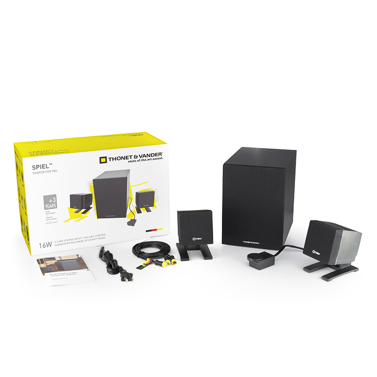 When designing Spiel, Thonet & Vander wanted to generate a great flow of sound in a compact size. It is a product that harmonizes the room. Without talking up much space, its acoustic quality gives life to your rooms. Ideal for everyday desktop use. Spiel has an output power of 16 watt RMS.