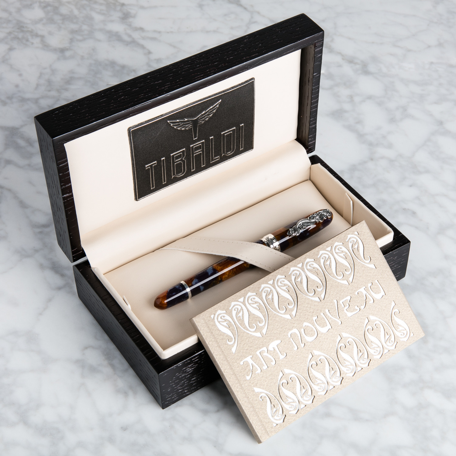 A rich past provides not just continuity but inspiration. For nearly a century, Tibaldi has produced superlative writing instruments, with its early years occurring concurrently with the Art Nouveau period. The movement’s love for forms found in nature, for curves, for elegance, influenced both the visual arts and decorative fixtures and furnishings, as well as the look and feel of manufactured objects of all types and functions. Pens and pencils – portable, personal devices for expressing one’s thoughts – proved to be ideal targets for the Art Nouveau vision. Tibaldi’s past has delivered a classic form perfect for reviving in the Tibaldi Art Nouveau Lapis Mermaid Roller Ball Pen, a modern version that respects the vintage original.