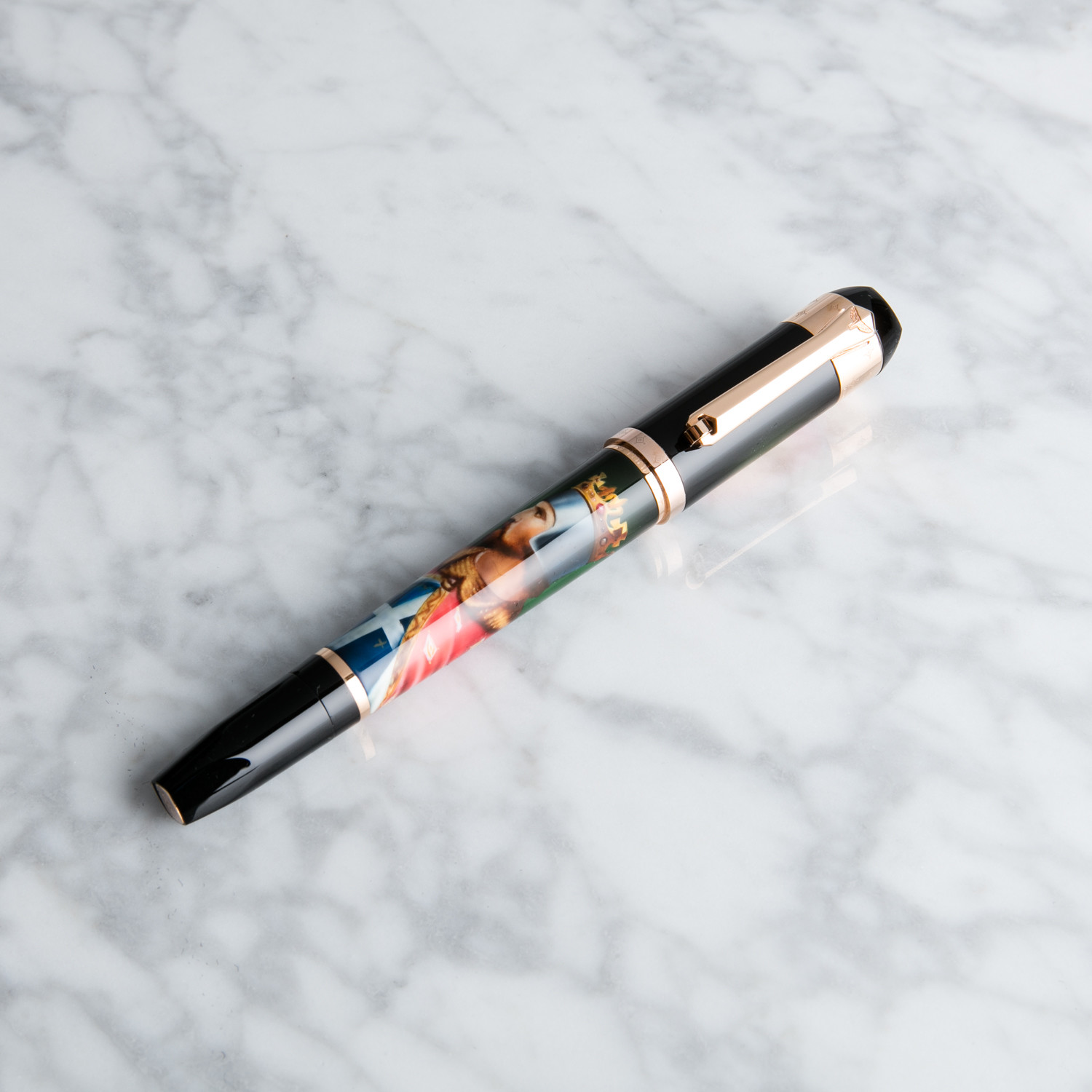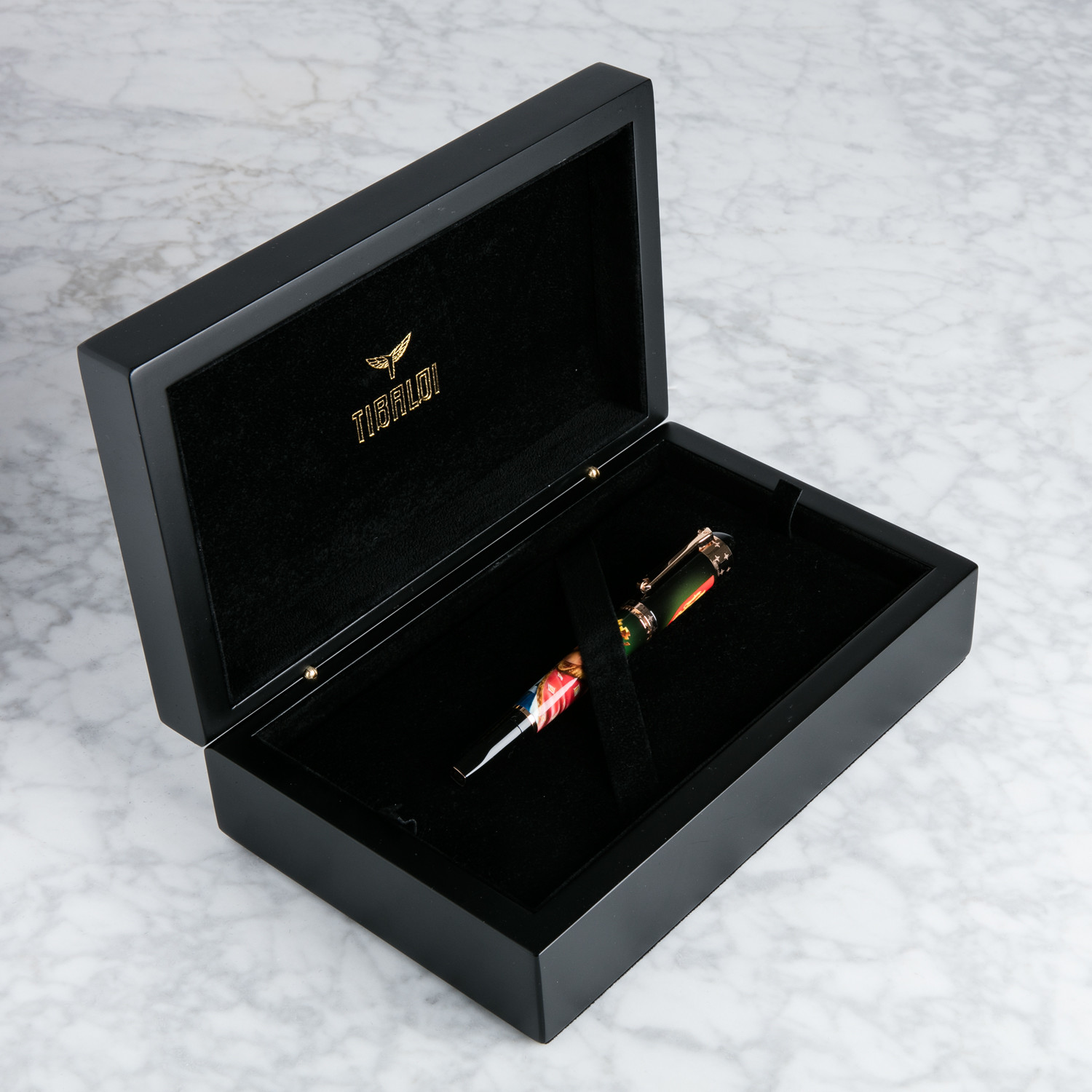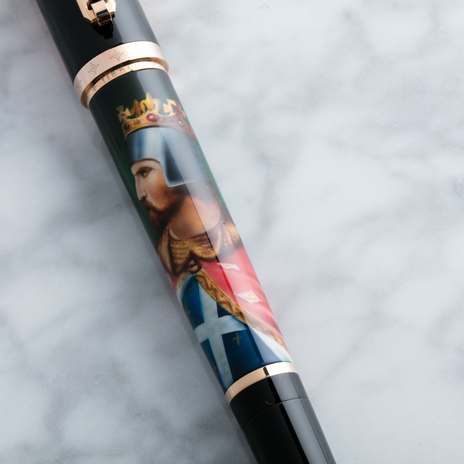 Clari Viri II is Tibaldi's precious pen collection, celebrating the most powerful and influential leaders the world has ever known. The Tibaldi Clari Viri II Richiard I Fountain Pen celebrates the powerful Richard I with a portrait on the barrel and a symbol of the great leader on the cap. Designed, painted and produced with supreme precision and craftsmanship, Tibaldi pens are ornate accessories and masterpieces of technological innovation.