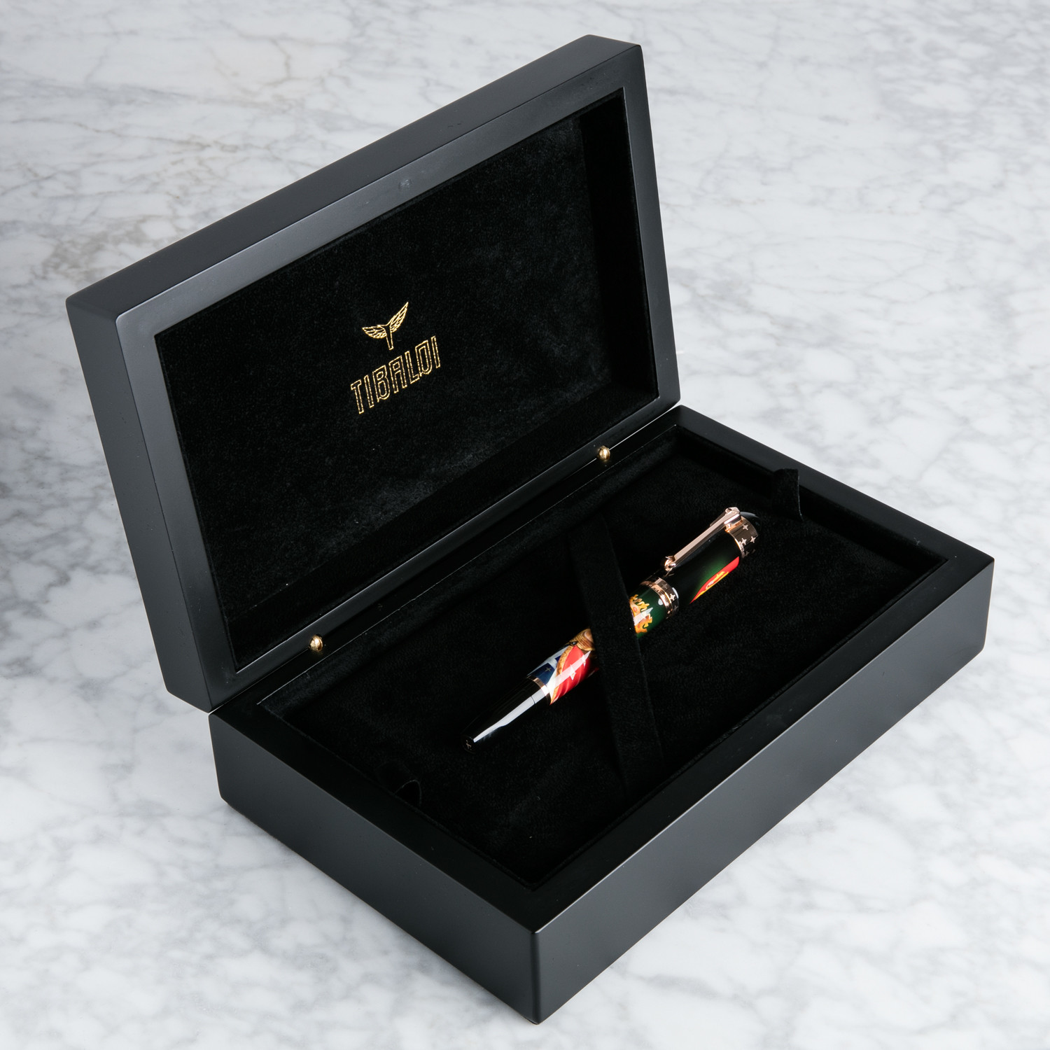 Clari Viri II is Tibaldi's precious pen collection, celebrating the most powerful and influential leaders the world has ever known. The Tibaldi Clari Viri II Richard I Rollerball Pen celebrates the powerful Richard I with a portrait on the barrel and a symbol of the great leader on the cap. Designed, painted and produced with supreme precision and craftsmanship, Tibaldi pens are ornate accessories and masterpieces of technological innovation.