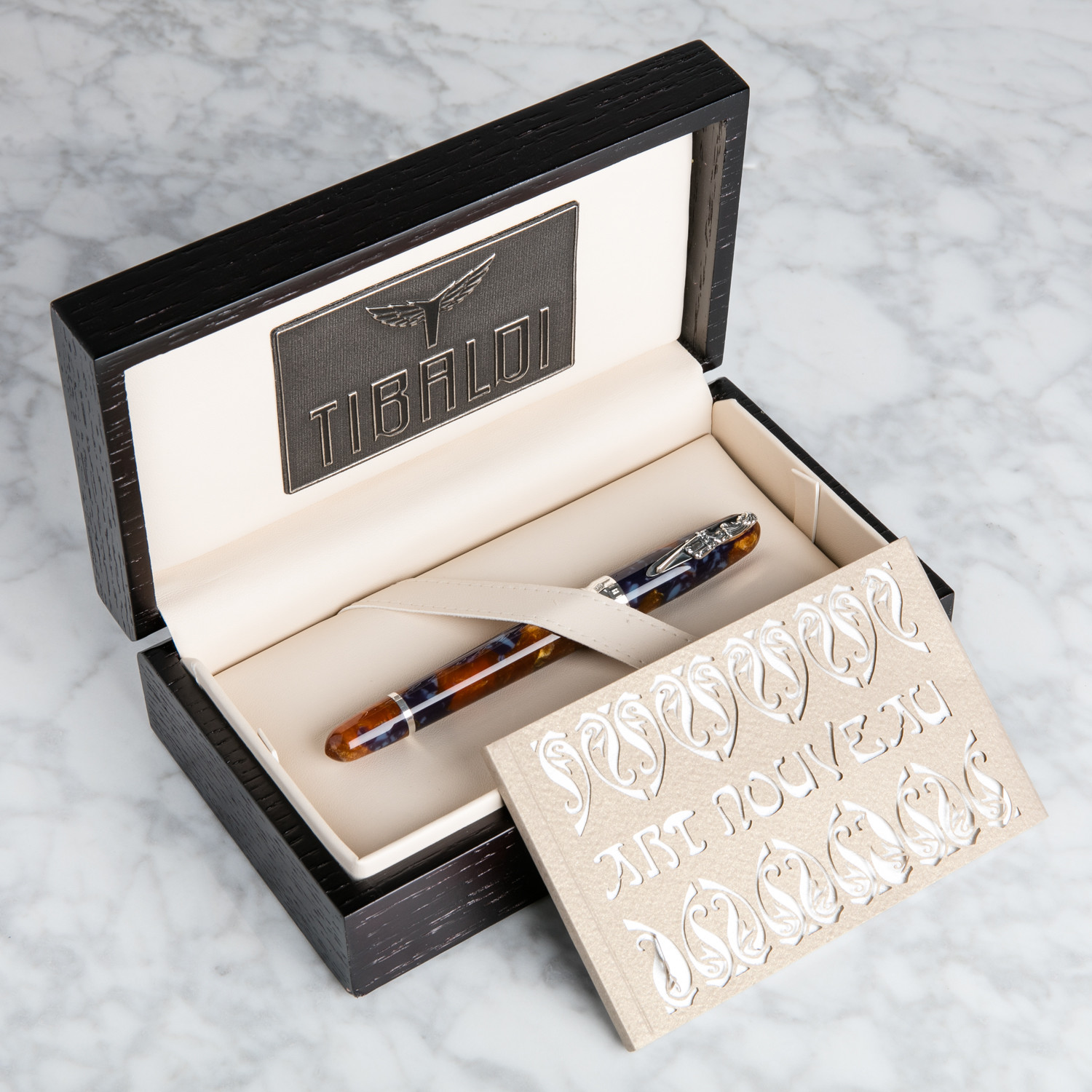 A rich past provides not just continuity but inspiration. For nearly a century, Tibaldi has produced superlative writing instruments, with its early years occurring concurrently with the Art Nouveau period. The movement’s love for forms found in nature, for curves, for elegance, influenced both the visual arts and decorative fixtures and furnishings, as well as the look and feel of manufactured objects of all types and functions. Pens and pencils — portable, personal devices for expressing one’s thoughts – proved to be ideal targets for the Art Nouveau vision. Tibaldi’s past has delivered a classic form perfect for reviving in the Tibaldi Art Nouveau Lapis Amazon Ball Point Pen, a modern version that respects the vintage original.