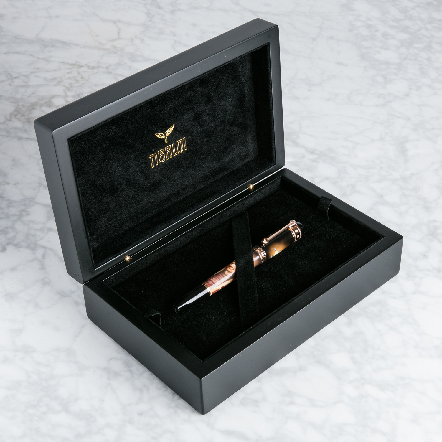 Clari Viri II is Tibaldi's precious pen collection, celebrating the most powerful and influential leaders the world has ever known. The Tibaldi Clari Viri II Genghis Khan Rollerball Pen celebrates the powerful Genghis Khan with a portrait on the barrel and a symbol of the great leader on the cap. Designed, painted and produced with supreme precision and craftsmanship, Tibaldi pens are ornate accessories and masterpieces of technological innovation.