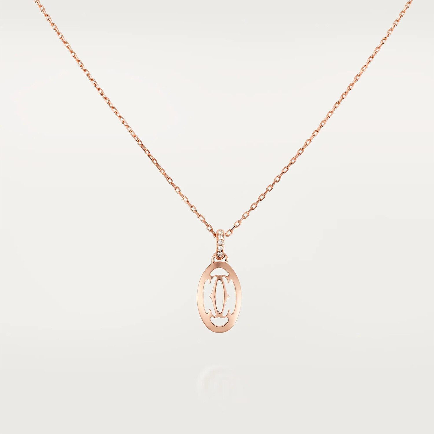Cartier // 18k Rose Gold + Diamond Logo Necklace // 14.76"-15.94" // Store Display