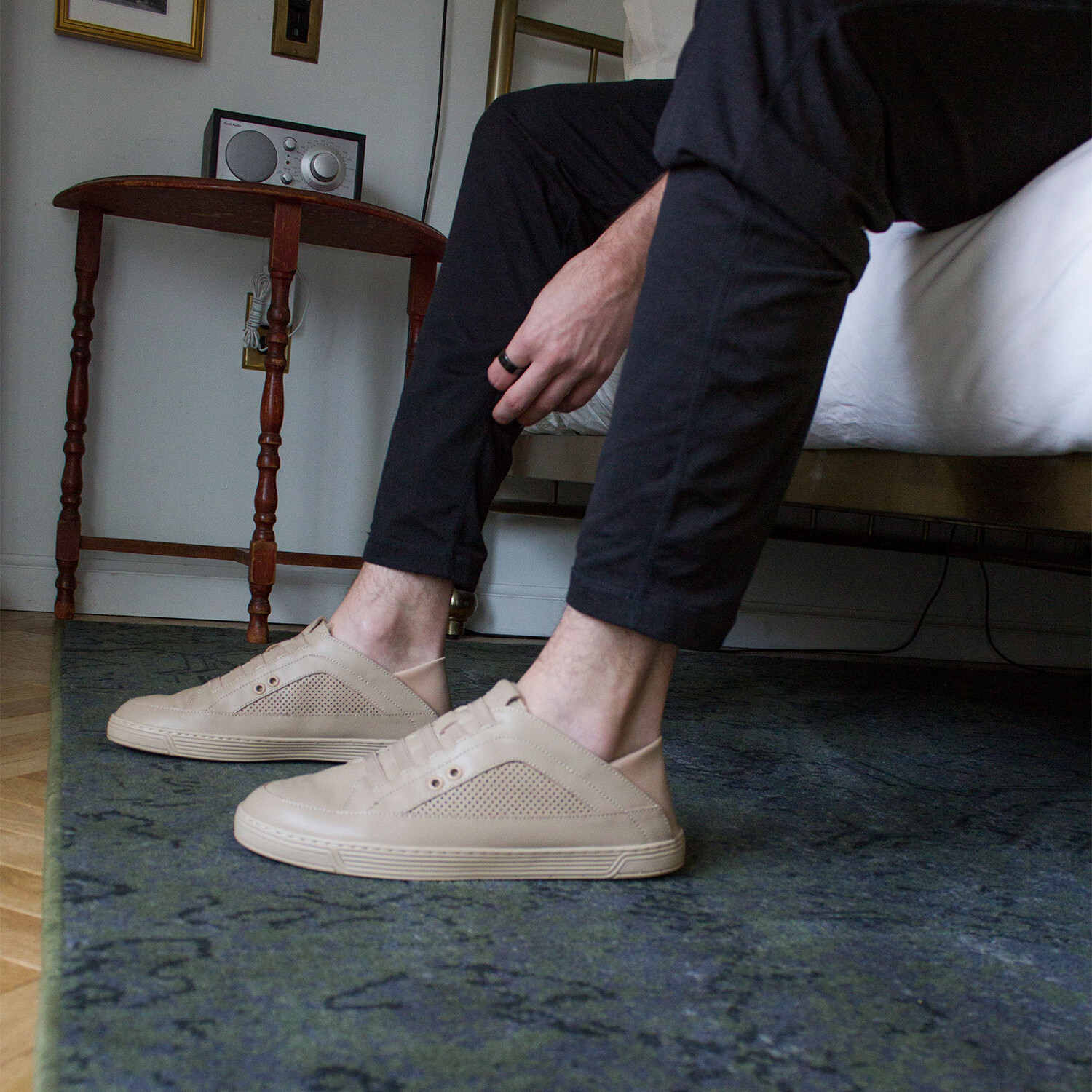 The classic silhouette of the Low Top Slippers is engineered for comfort and crafted entirely out of slipper materials. Its 10mm plush wool lining wicks moisture to keep your feet warm and dry. Wear them as a traditional slippers, or flip the collapsible heel up for a more secure fit. Stretch laces expand so you can simply slip them on without any tying. The yoga mat insoles are designed for incredible comfort under pressure. Its premium leather is butter soft and flexible.