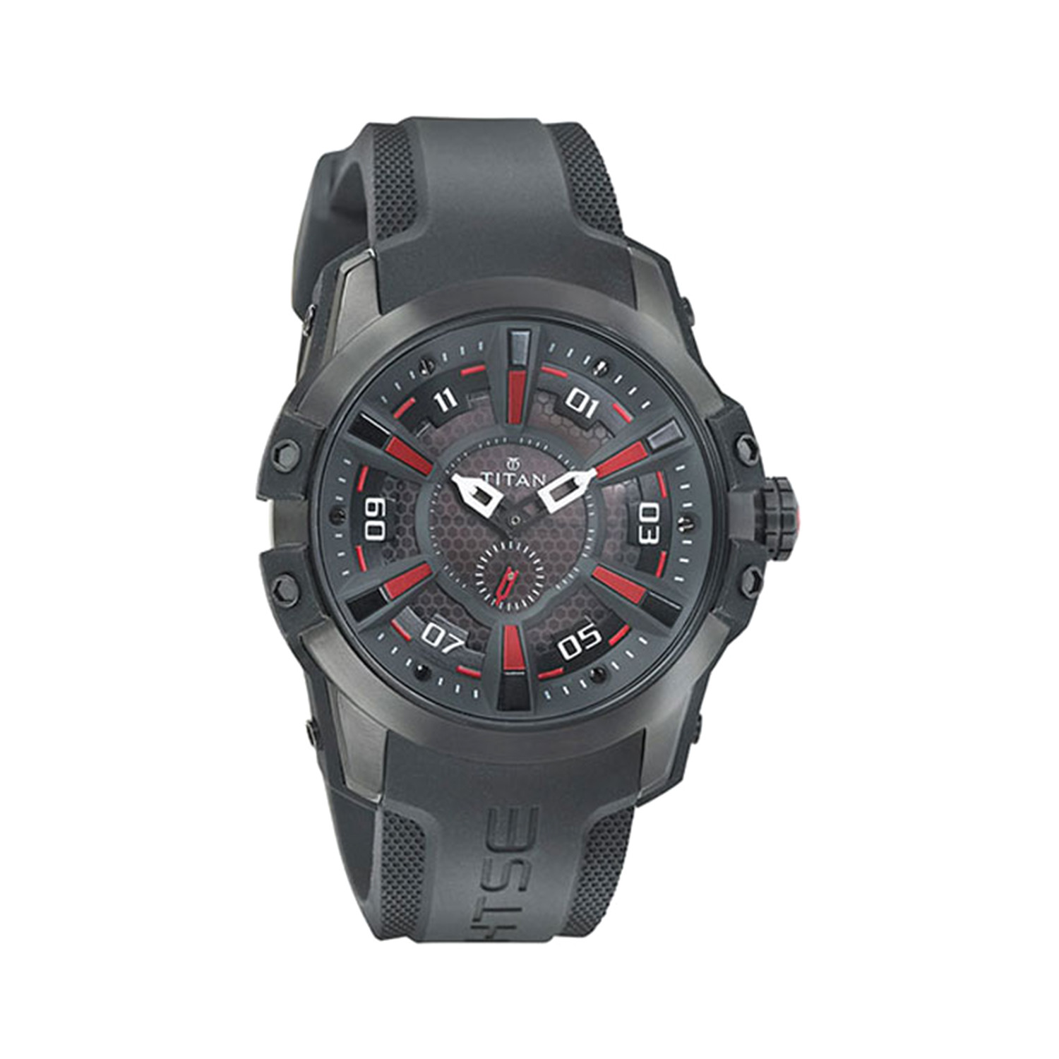 The innovative HTSE (High Tech Self Energizing) Collection by Titan is a light sensitive wristwatch that can be recharged and powered with the smallest of light sources. These watches are completely self-efficient and power the accurate quartz movement with the light from a mere flicker of a candle. Combined with geometric case designs, anthracite colors, and textured dials, an HTSE is a must have accessory for every watch collector. This water-resistant watch features a beautiful black PVD-plated stainless steel case and is perfectly complemented by its subtle dial textures.