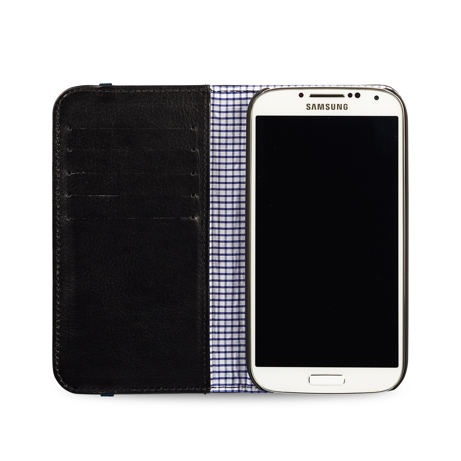 Introducing the Flip Wallet for Samsung S4: a classic yet modern, streamlined case crafted from supple and grainy naturally milled leather, with check shirt lining. It's everything you expect from a wallet and more, with a secure snap-in shell for your phone, and an invisible magnet which holds the flap back whilst talking.