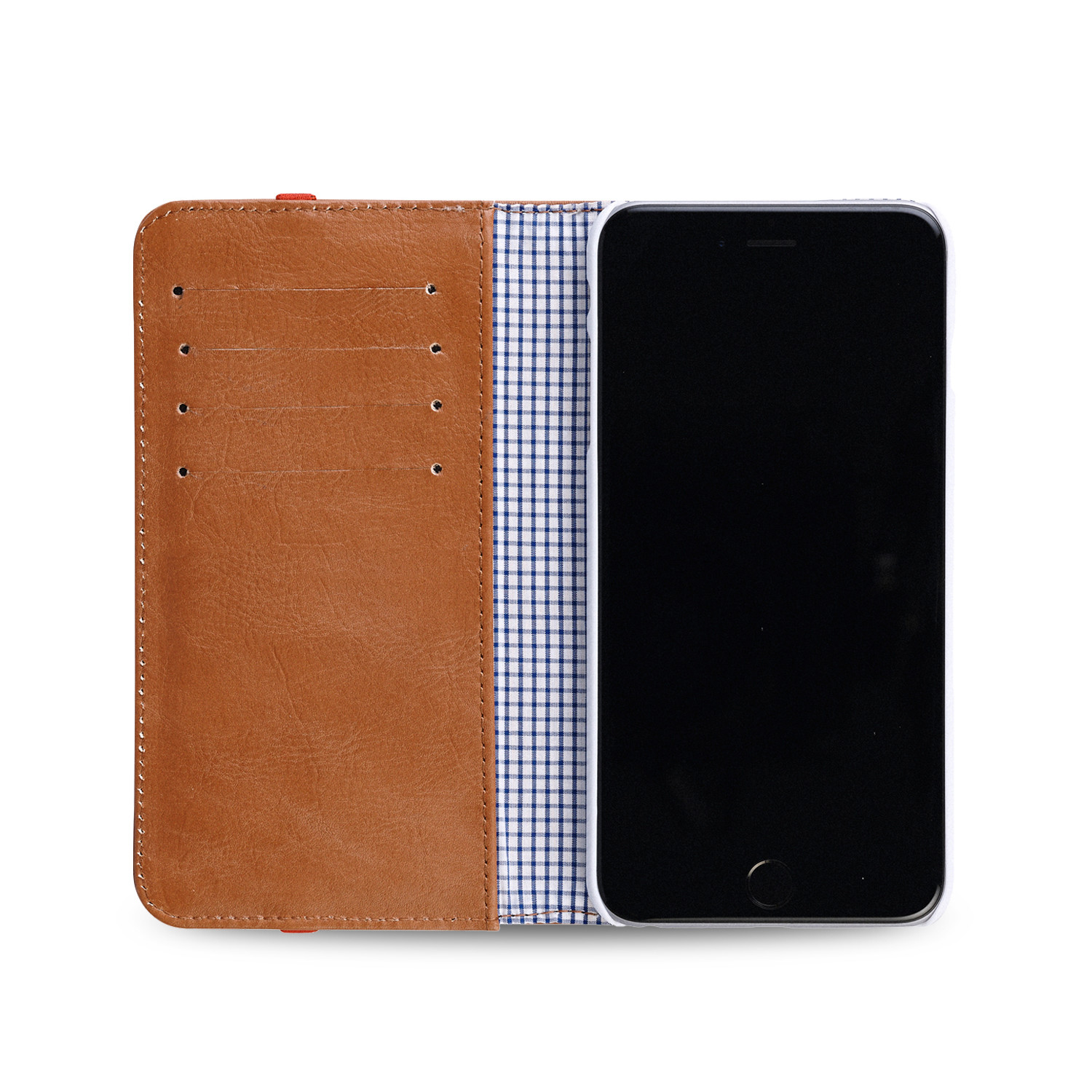 Introducing the Flip Wallet for iPhone 6: a classic yet modern, streamlined case crafted from supple and grainy naturally milled leather, with check shirt lining. It's everything you expect from a wallet and more, with a secure snap-in shell for your phone, and an invisible magnet which holds the flap back whilst talking.