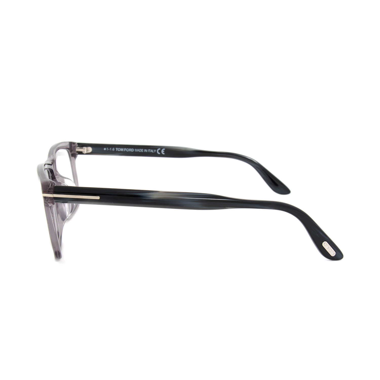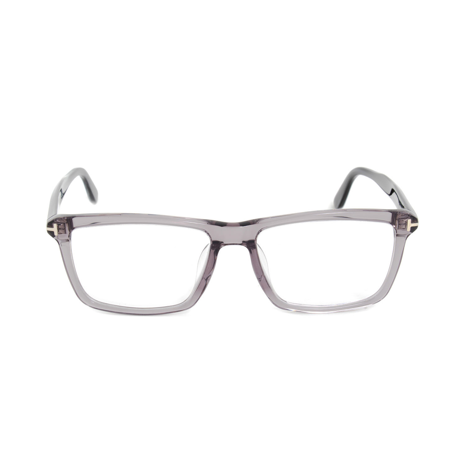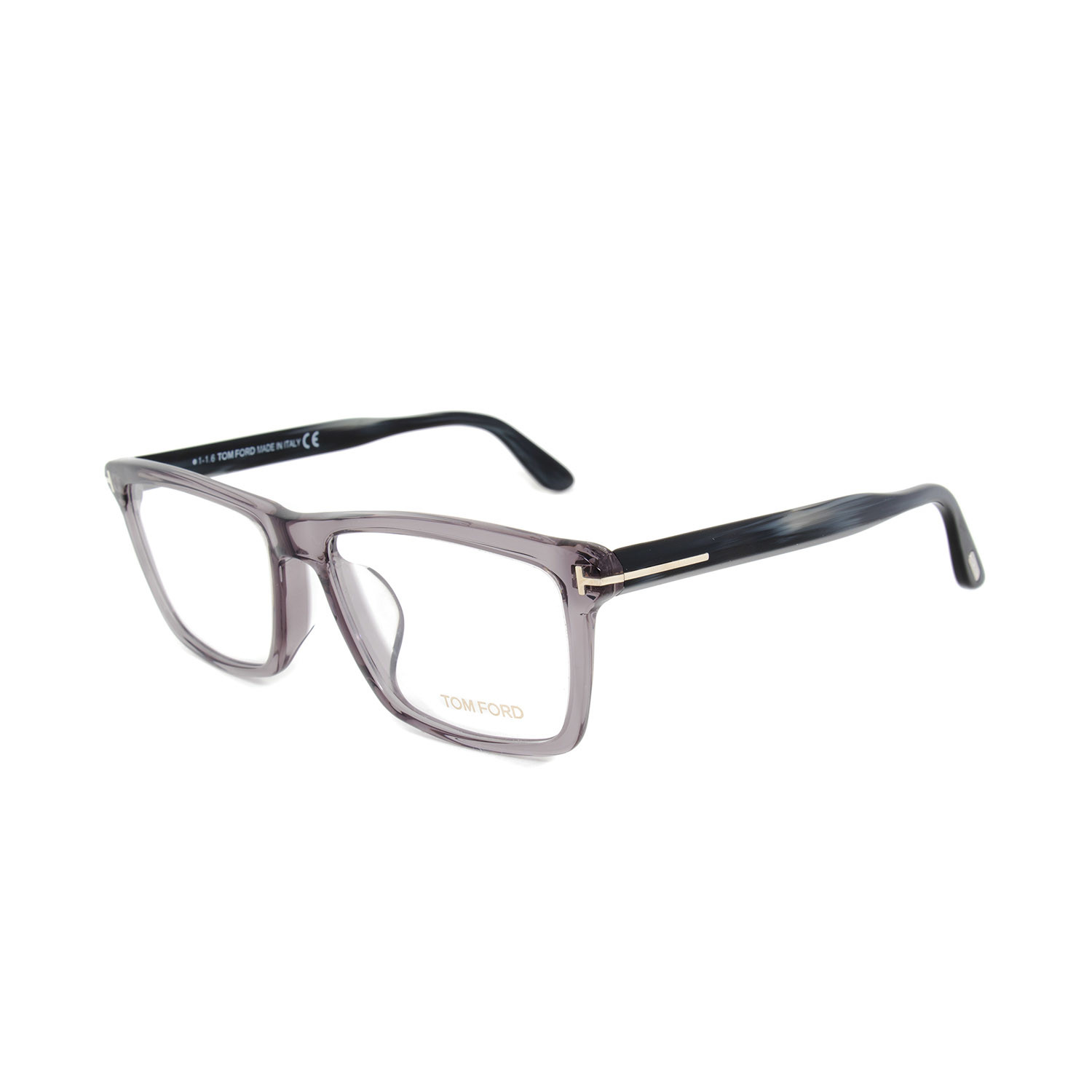 Studiously sharp edged, these Tom Ford FT5407 020 Eyeglass Frames are superbly enriched with a crystal grey full rim single bridge rectangular frame. Adorned with silver "T" branding overlapping the hinges and situated on the ear tips, the dark tapering paddle arms consummate the offering. Measuring 57-16-145mm, this item ships with demo lenses, its own case, lens cloth, and designer's documents.