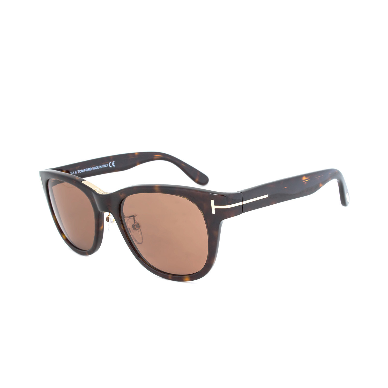 Studious and assertive, these Tom Ford FT9257 52J Sunglasses feature a havana brown full rim single bridge oval frame. Gold toned T branding is situated overlapping the hinges, and the brown lenses provide a distince look. Measuring 54-19-140mm, this item ships with its own distinctive case, lens cleaning cloth, and designer's documents.
