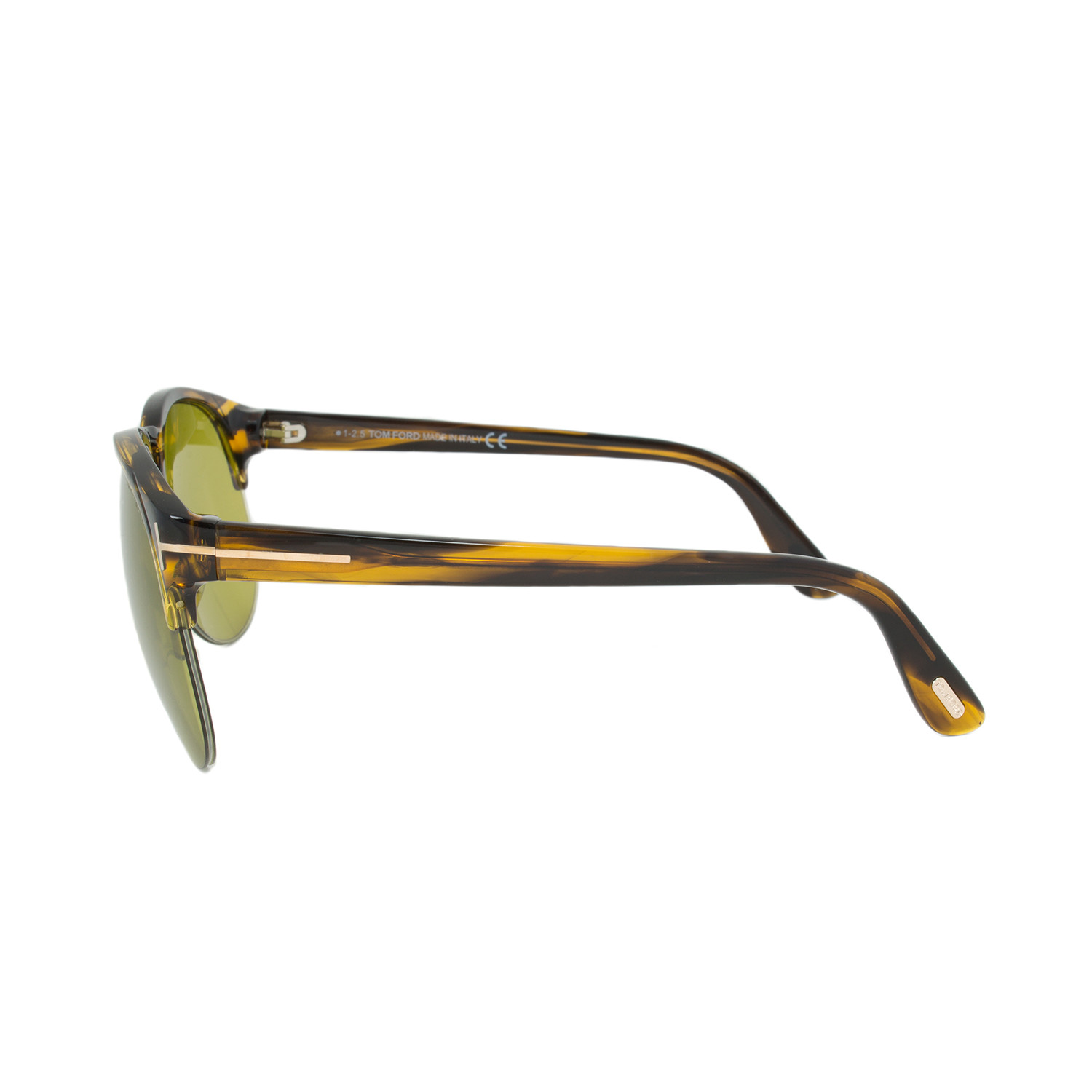 With this Trevor model, iconic designer Tom Ford introduces a men's sunglass design which is on the cutting edge of high style. The model TF472 41N showcases an aesthetically appealing green havana semi-rimmed double bridge oval frame. The trademark gold toned T branding overlapping the hinges and green lenses provide an air of distinction to this offering. Measuring 63-16-140mm, this item ships with its own case, lens cleaning cloth, and manufacturer's documentation.