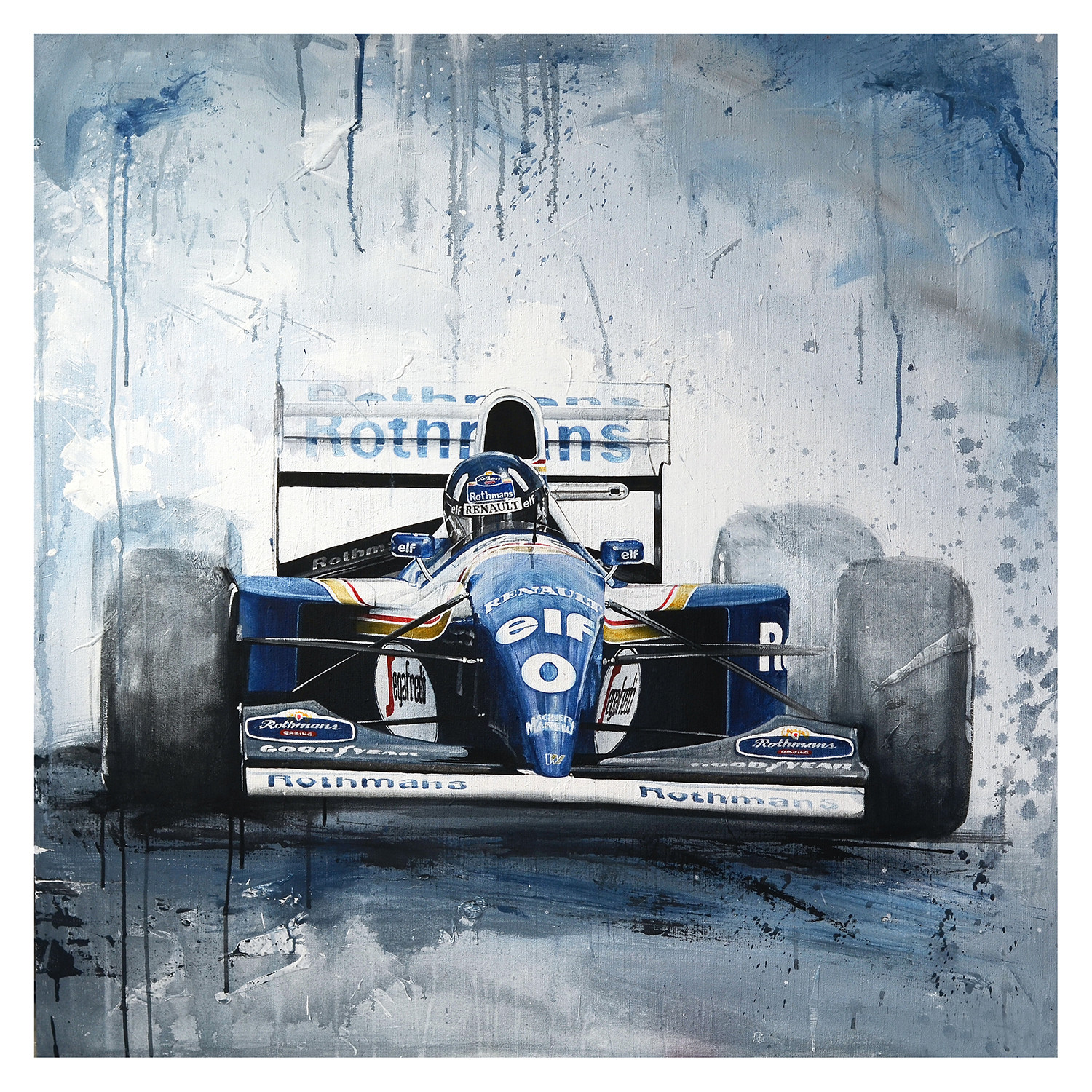 Artist Tom Havlasek was born in Brno, Czech Republic, where he grew up spending his weekends watching races at the well-known Brno Circuit. This early love for motorsport has become the primary inspiration for his work as an artist. A majority of his pieces begin as photographs, which he digitally edits and then recreates with paint on canvas. His lifelike portraits take on a bold new aesthetic with unexpected spray paint-like splashes, drops, and blurs throughout— effectively drawing a connection between the abstract and the concrete; the rough, gritty world of circuit racing coupled with the sleek, pristine look of these high performance vehicles.