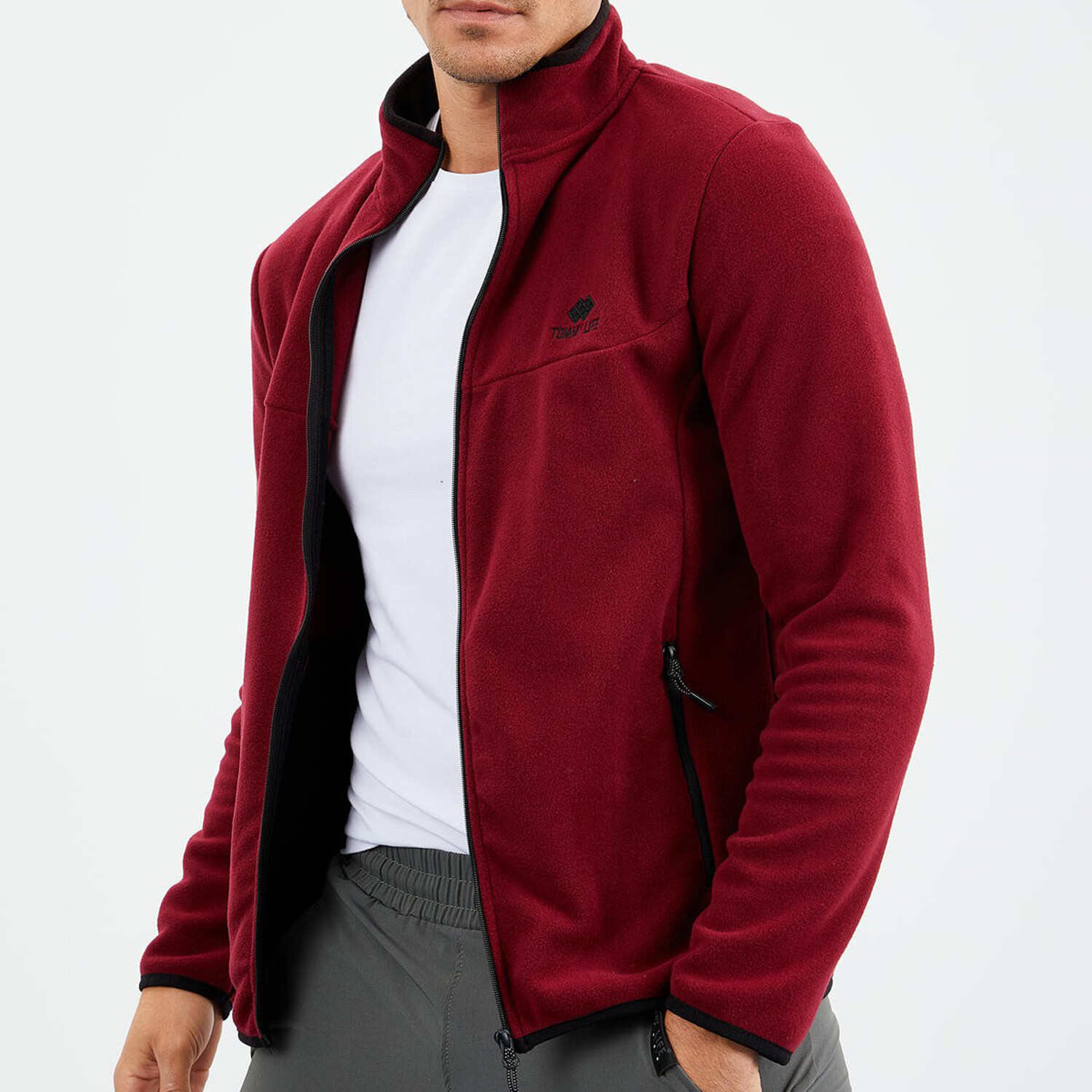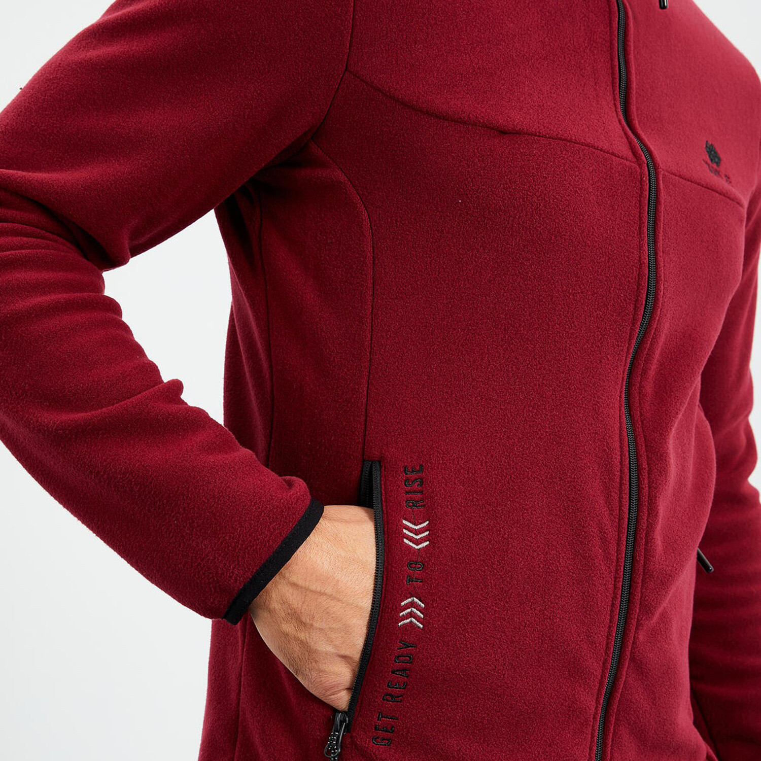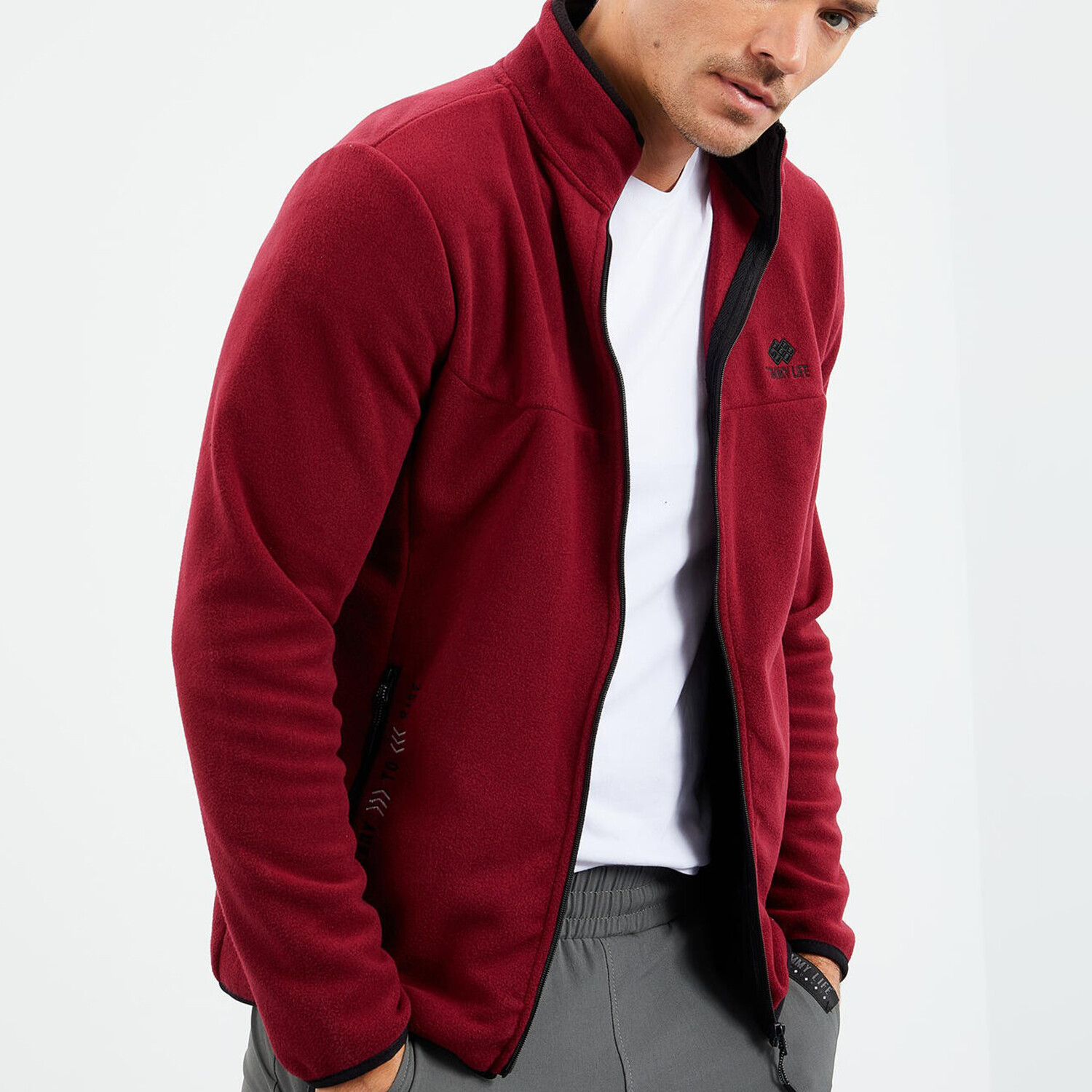 Men's Embroidered Zip-Up Collared Polar Fleece Jacket // Burgundy