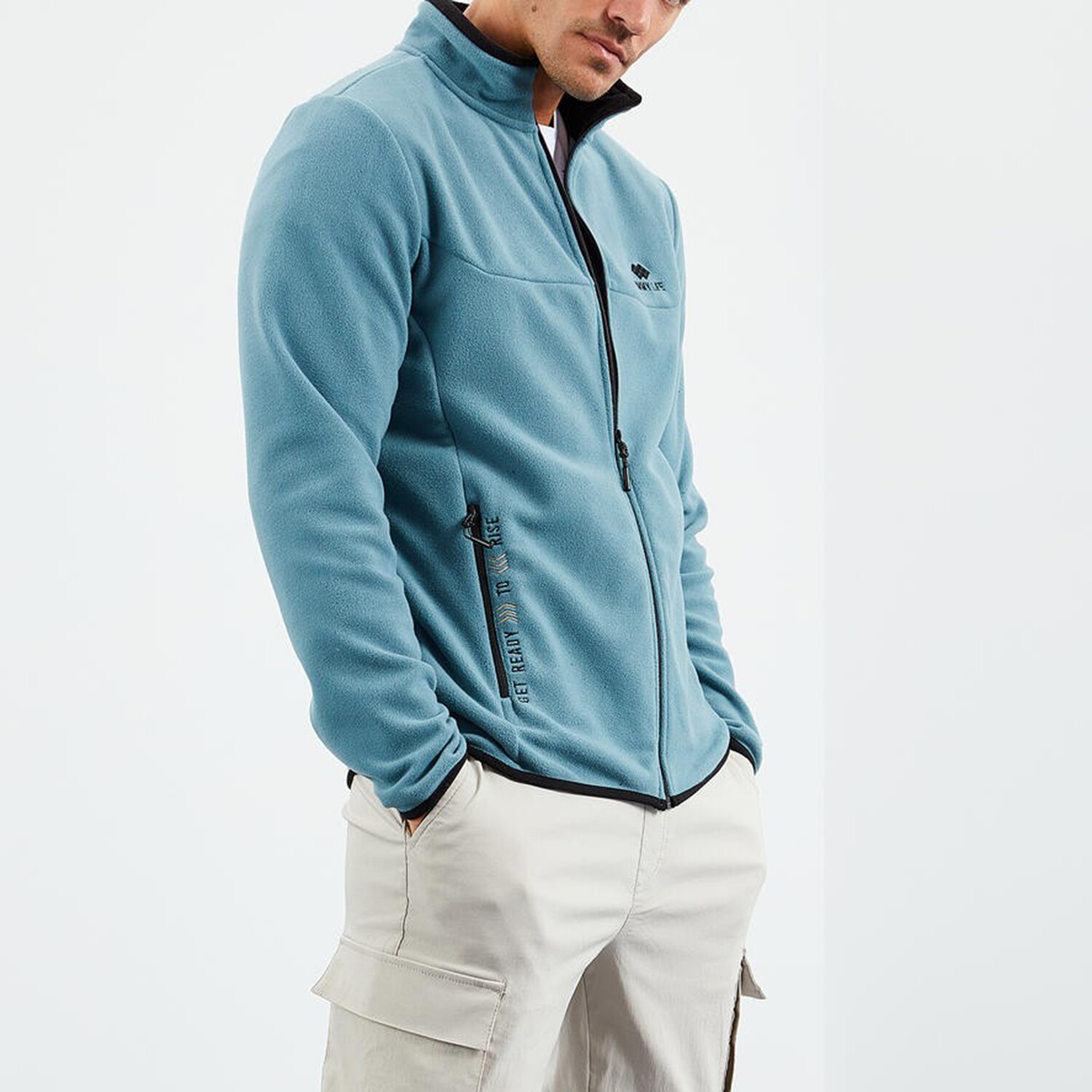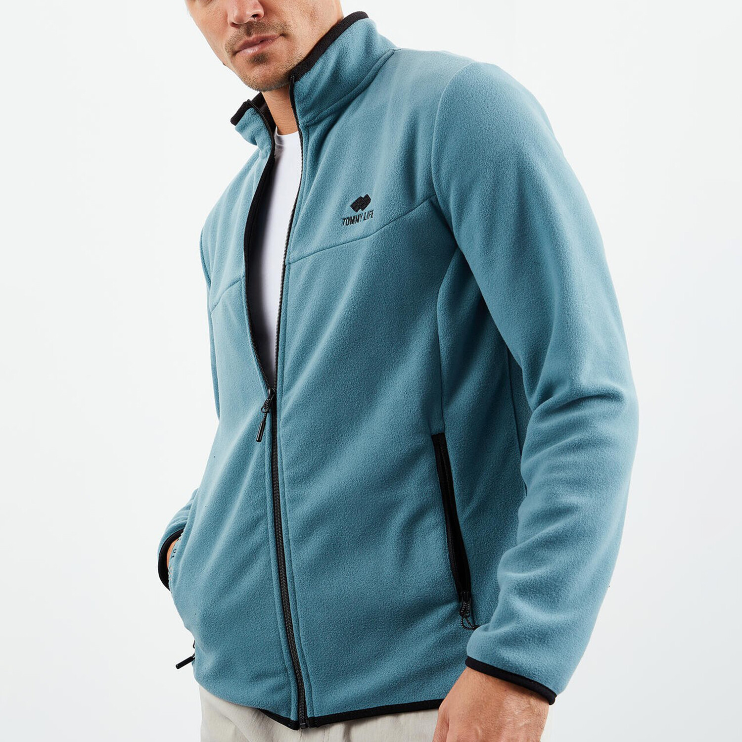 Men's Embroidered Zip-Up Collared Polar Fleece Jacket // Mint Green