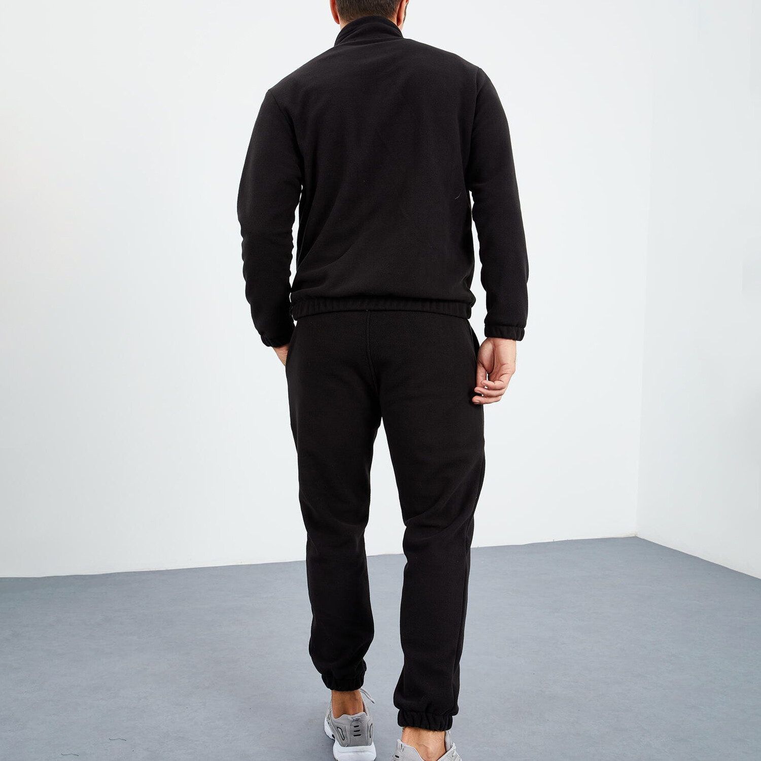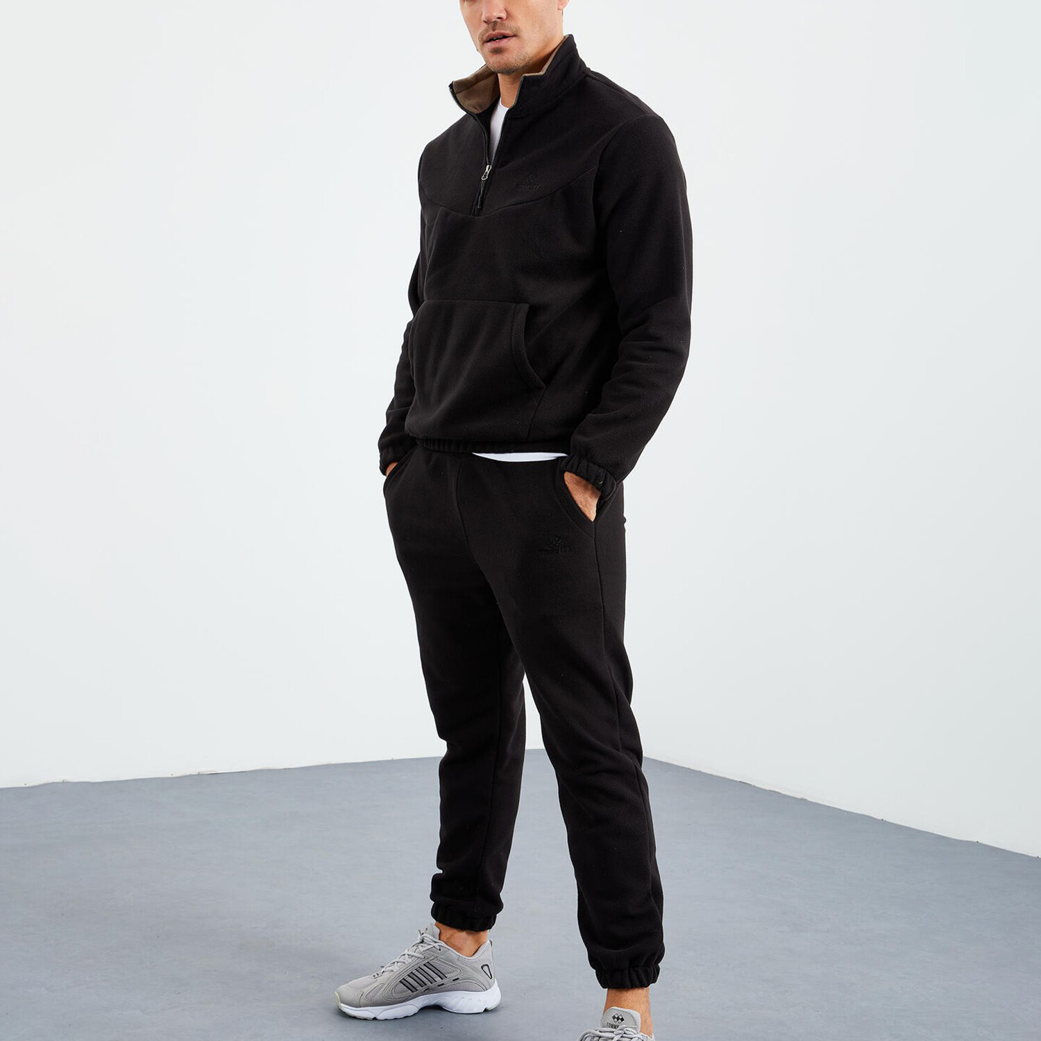 Men's Half-Zip Pullover + Jogger Polar Fleece Tracksuit Set // Black